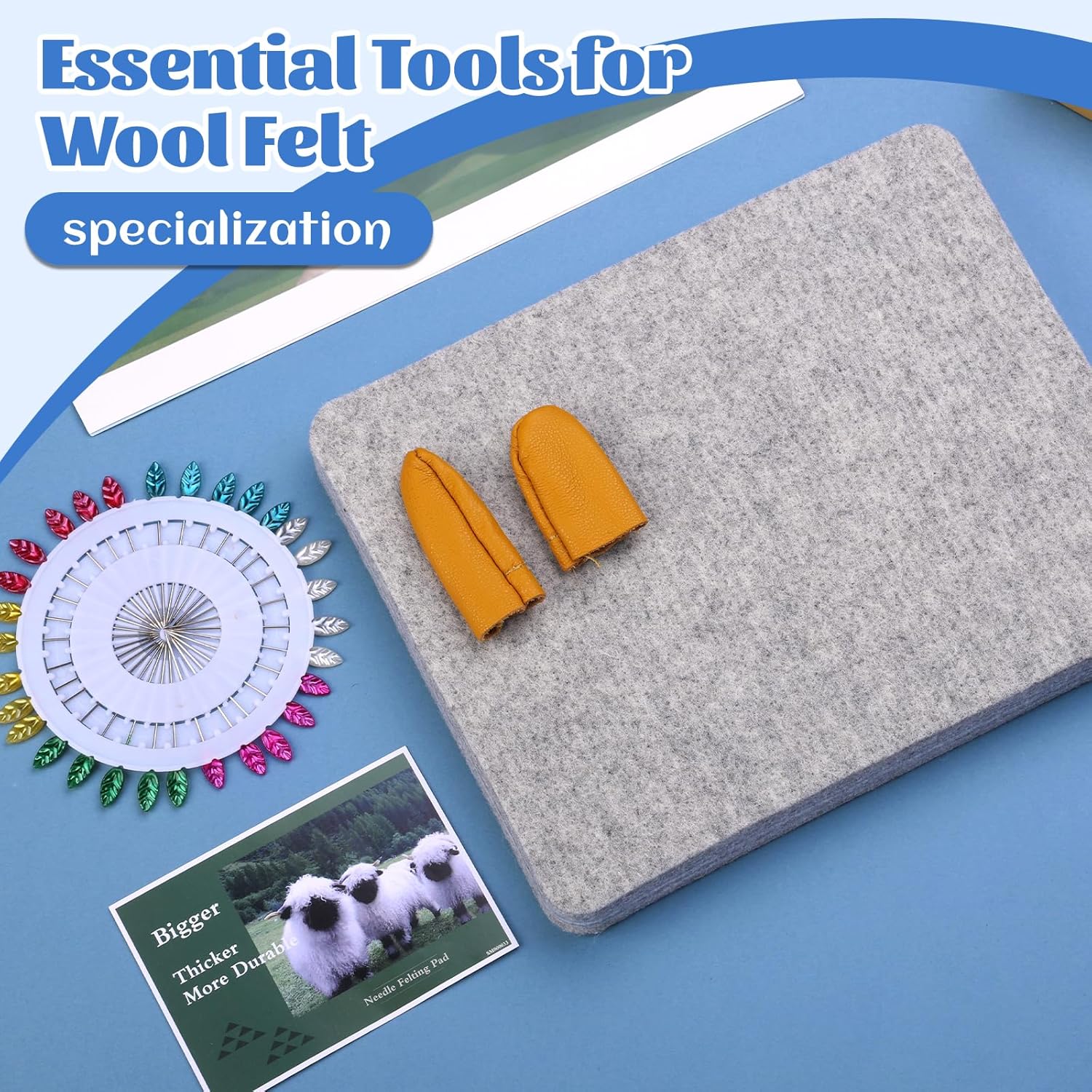 - OTHER ACCESSORIES: 1 high-quality felt pad could protect your table and felting needles. Along with a felt pad, you'll also receive a pair of finger cots and a set of straight pins. We recommend that you wear finger cots when felting wool. And straight pins can help you making small size felting wool, and link different parts