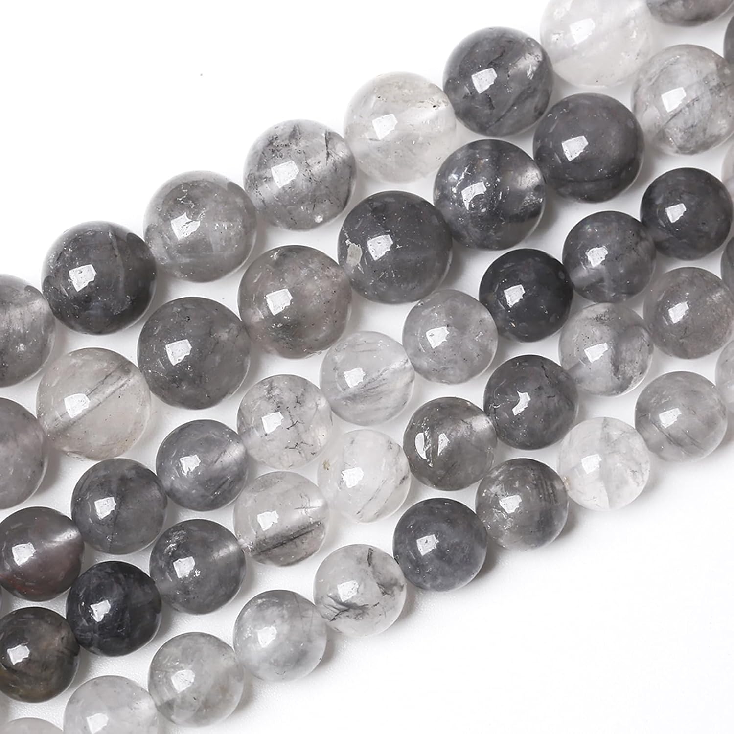 - 【Material】: Genuine Natural Grey Cloud Crystal Quartz Gemstones ,Round Loose Stone Beads,Energy Stone Healing Power,Help activate the mind