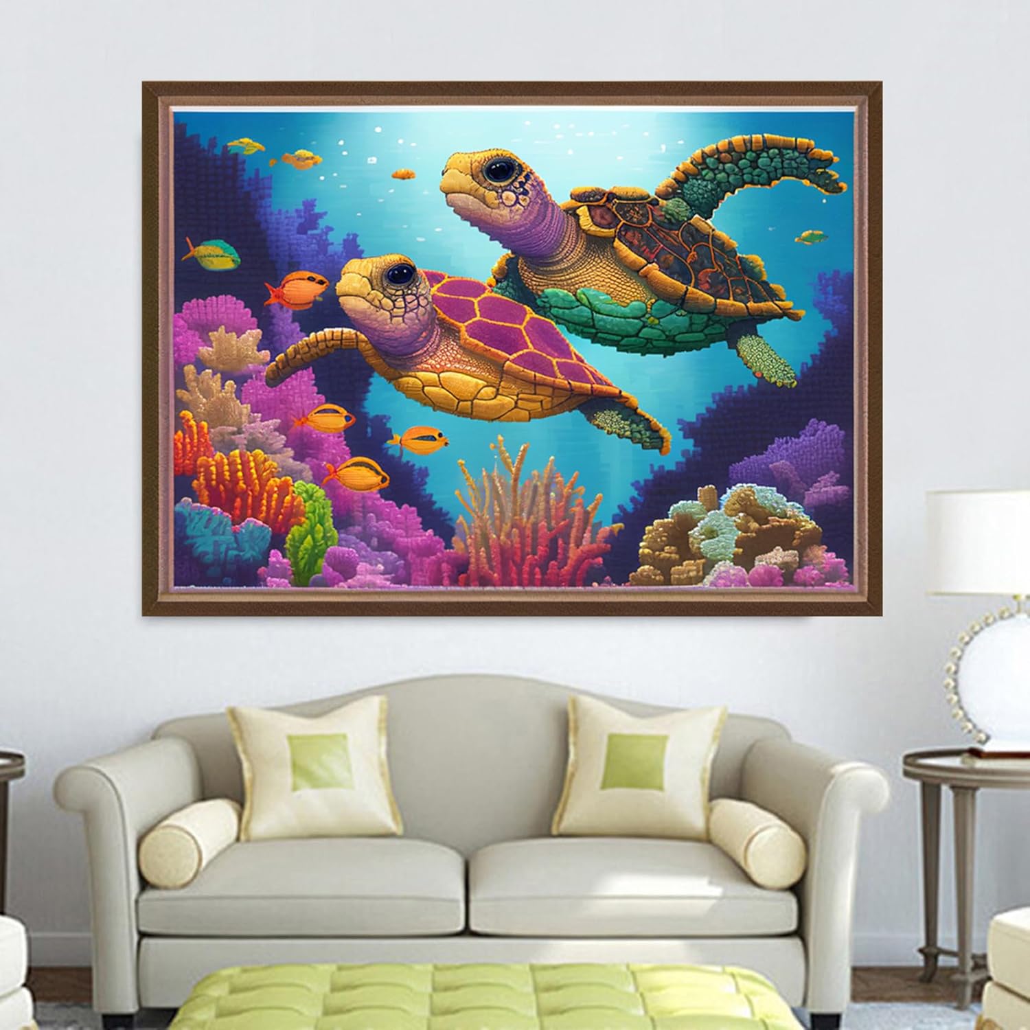 Dimensean Stamped Cross Stitch Kits Full Range of Embroidery Patterns Starter Kits for Beginners Adult or Kids DIY Cross Stitches Needlepoint Kits 11CT-Sea Turtle 15.7x19.7 inch