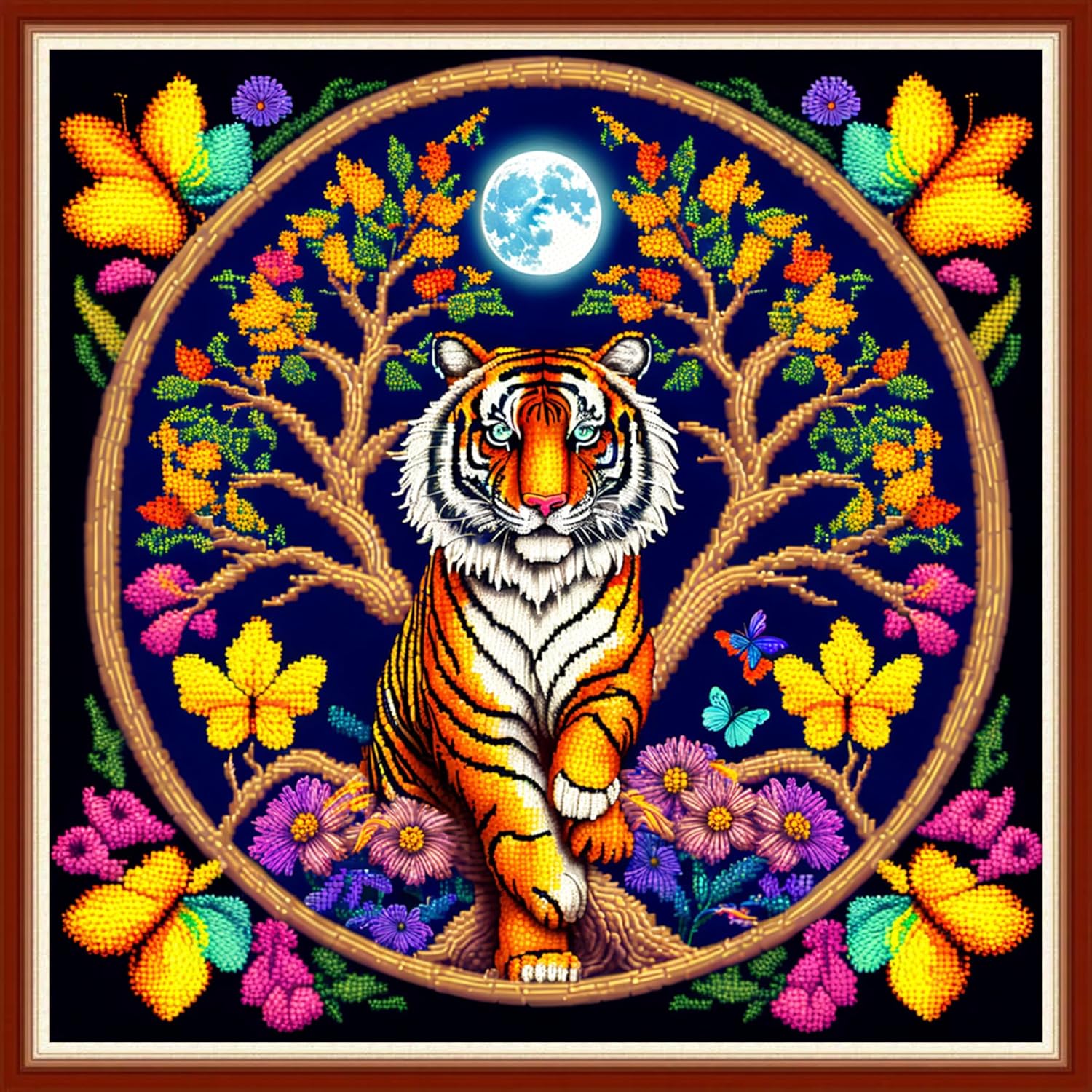Dimensean Stamped Cross Stitch Kits Full Range of Embroidery Patterns Starter Kits for Beginners Adult or Kids DIY Cross Stitches Needlepoint Kits 11CT-Tiger Wreath 17.7x17.7 inch