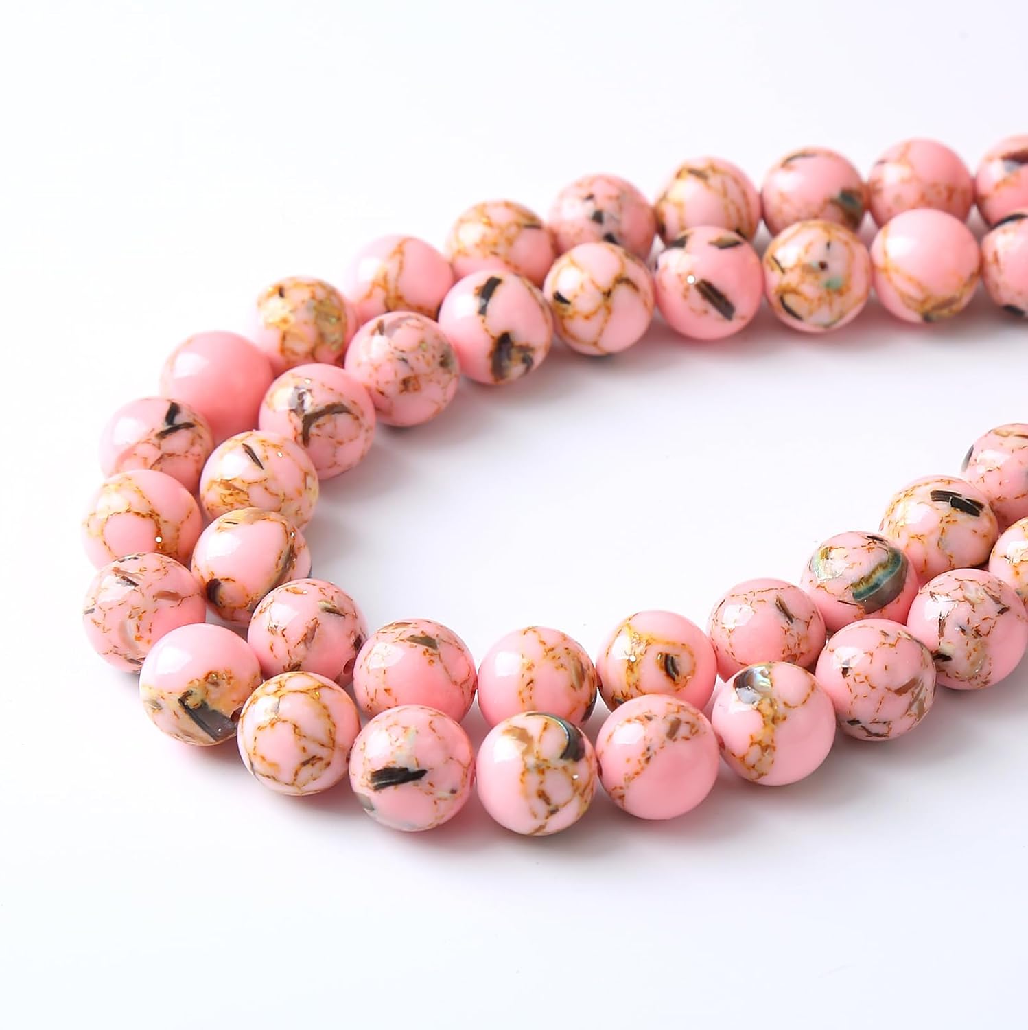 - 【Material】: Genuine Natural Pink Shell Turquoises Gemstones ,Round Loose Stone Beads,Energy Stone Healing Power,Help activate the mind