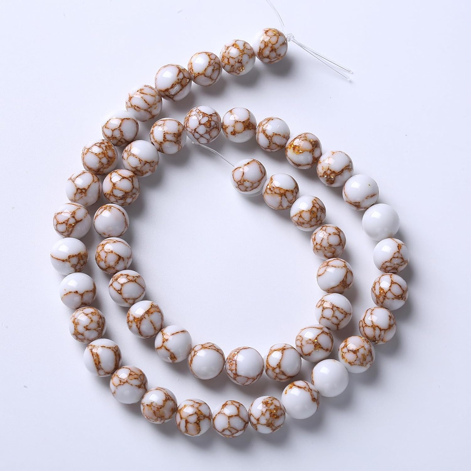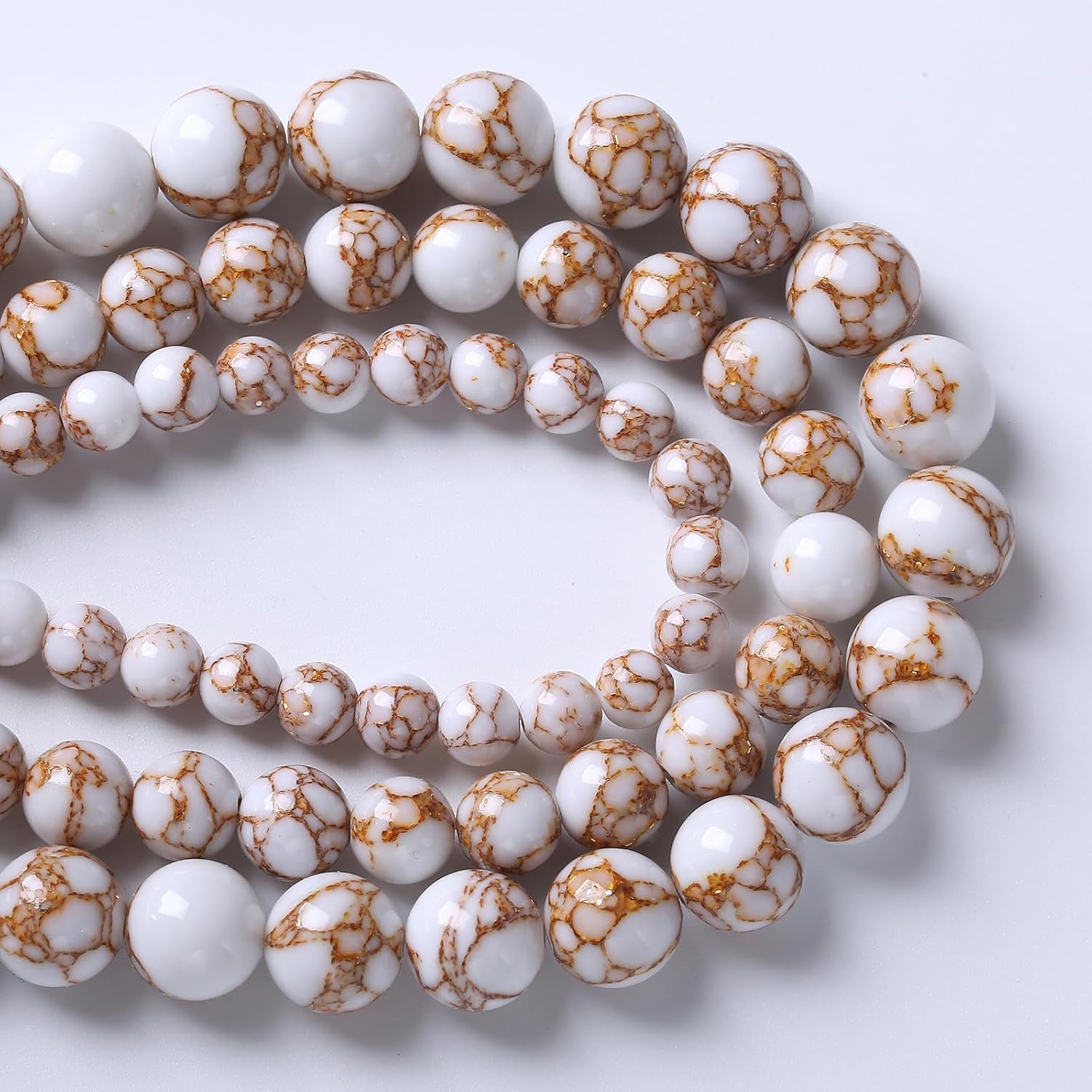 60pcs 6mm White Howlite Spun Gold Stone Beads for Jewelry Making Natural Stone Energy Healing Beads DIY Bracelet Necklace 15" (6mm, White Howlite Spun Gold Stone)