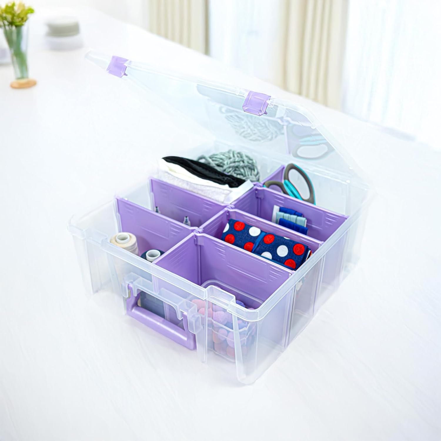ArtBin 6990JZ Super Satchel Double Deep Compartment Box - Art Storage with 8 Removable Compartments, Smart Closure for Craft Supplies (Purple- Pack of 1)