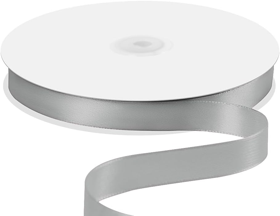 5/8" x 100 Yards Satin Ribbon - Silver Silk Ribbon with Spool - Ideal for Gift Wrapping, Floral Bouquets, Crafts, Wedding Party Decorations, Christmas and Sewing Projects