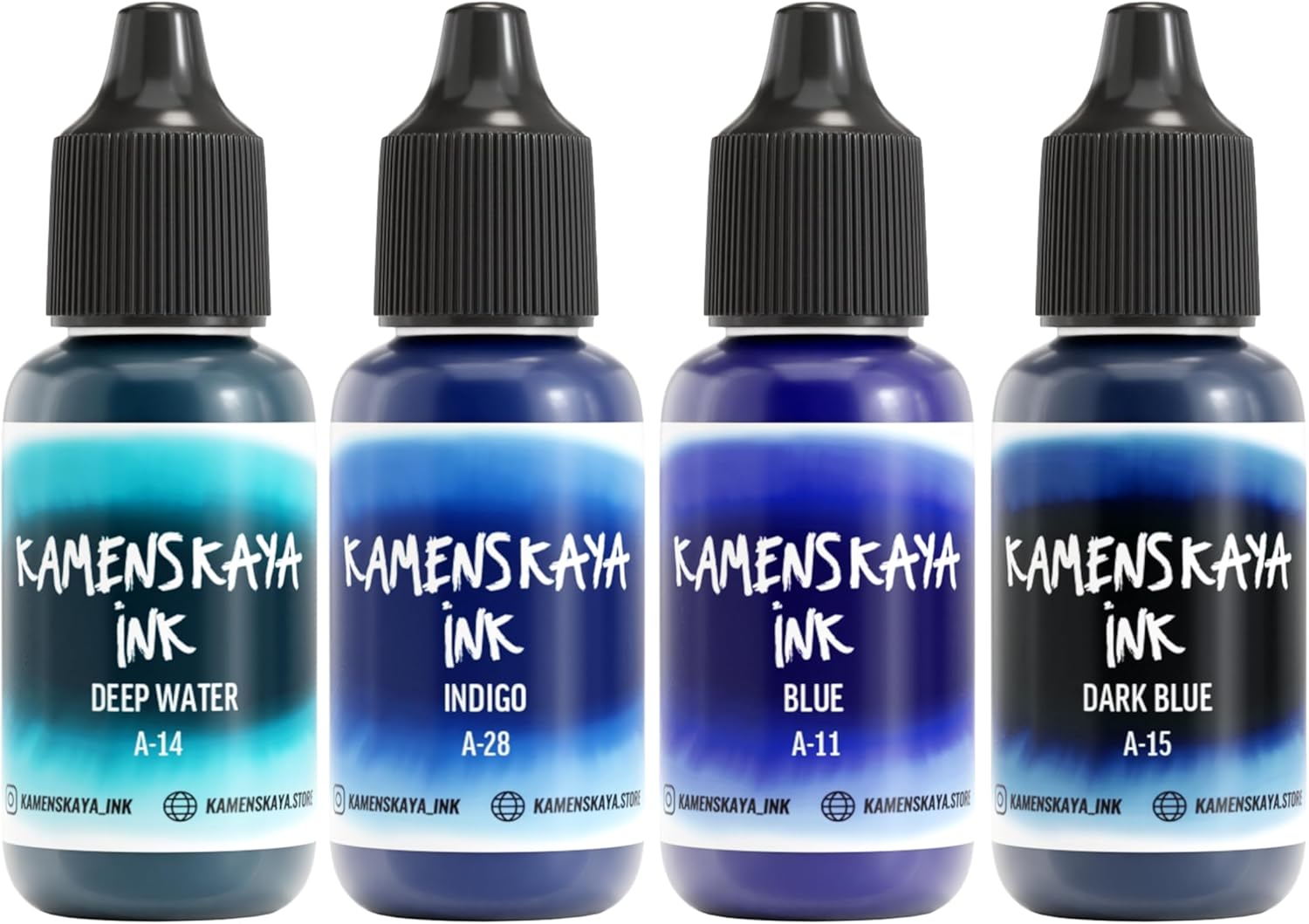 - Set composition: 4 inks 0.51 fl oz (15 ml) each of basic ‘A’ line (light translucent texture, saturated color and a nice satin finish)