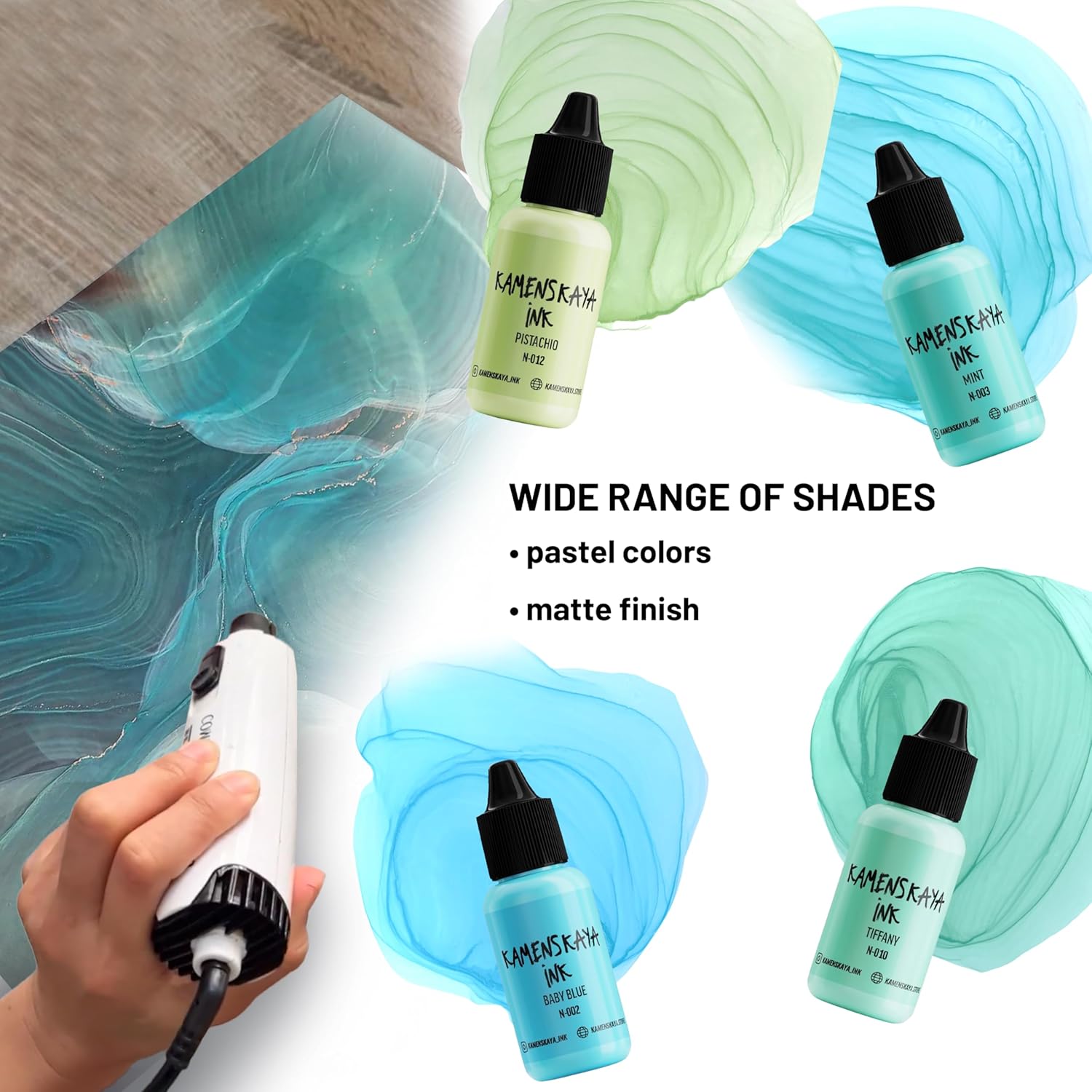 - Set composition: 4 inks 0.51 fl oz (15 ml) each of pastel alcohol ink (delicate pastel shade with velvety finish based on dye and pigment, where the pigment provides a dense and opaque layer, while the dye is responsible for the color)