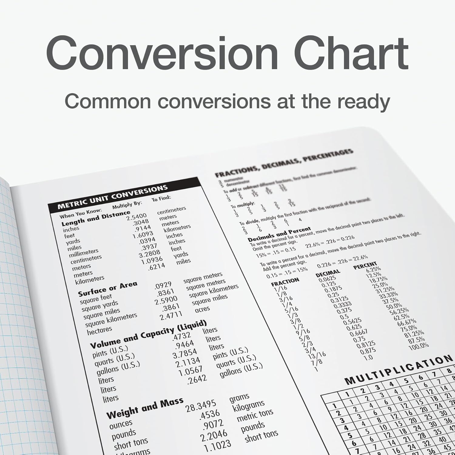 - Brightly colored notebook covers have conversion charts and a blank class schedule inside; use erasable pens or pencils to update your schedule as needed
