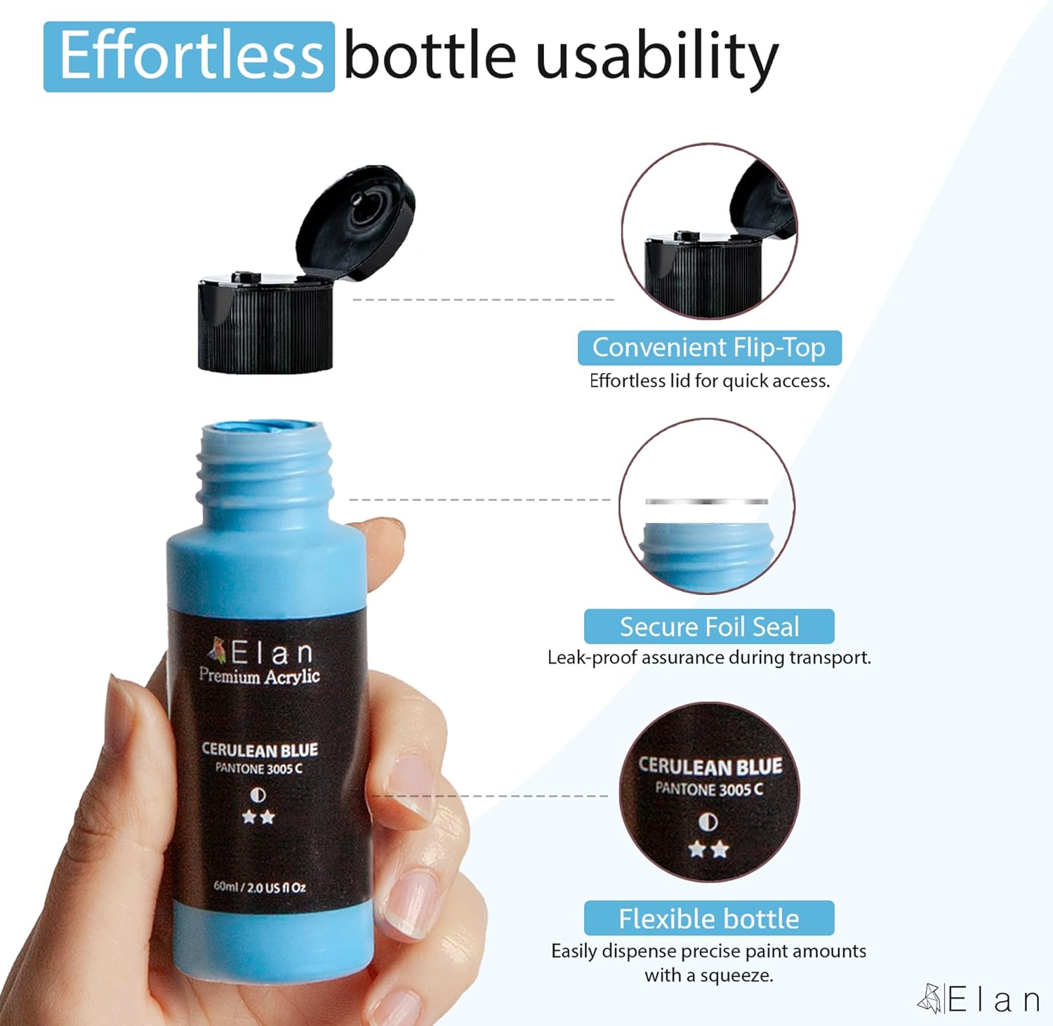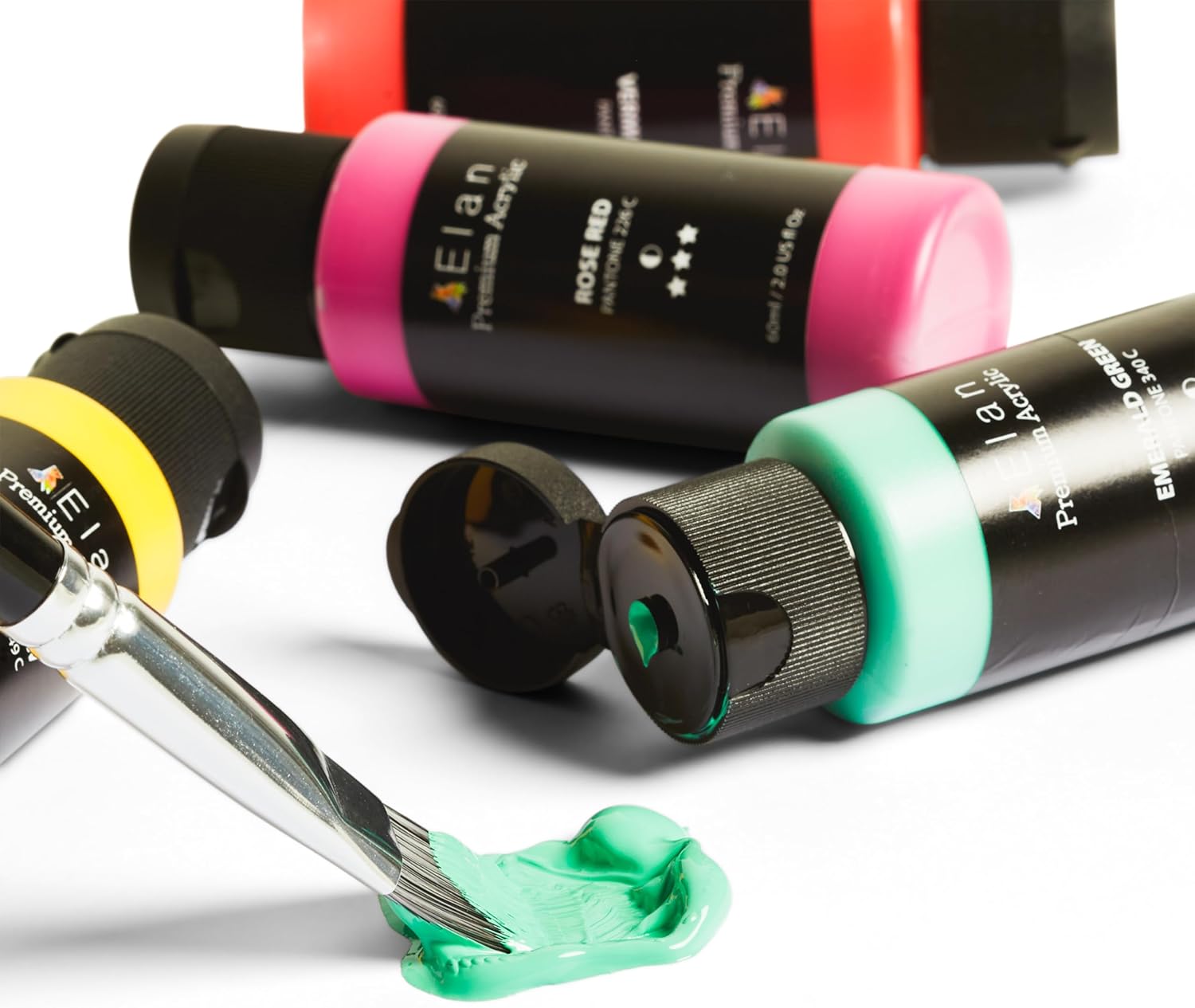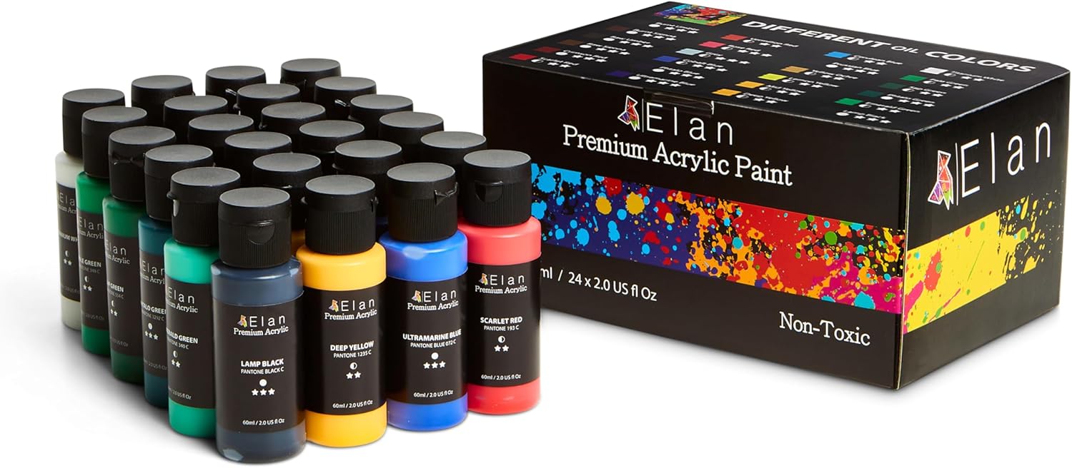 Elan Professional Acrylic Paint Set, 24 Vibrant Colors Acrylic Paint Tubes 2fl oz, Non-Toxic Tubes for Canvas & Crafts, Art Paints for Adults