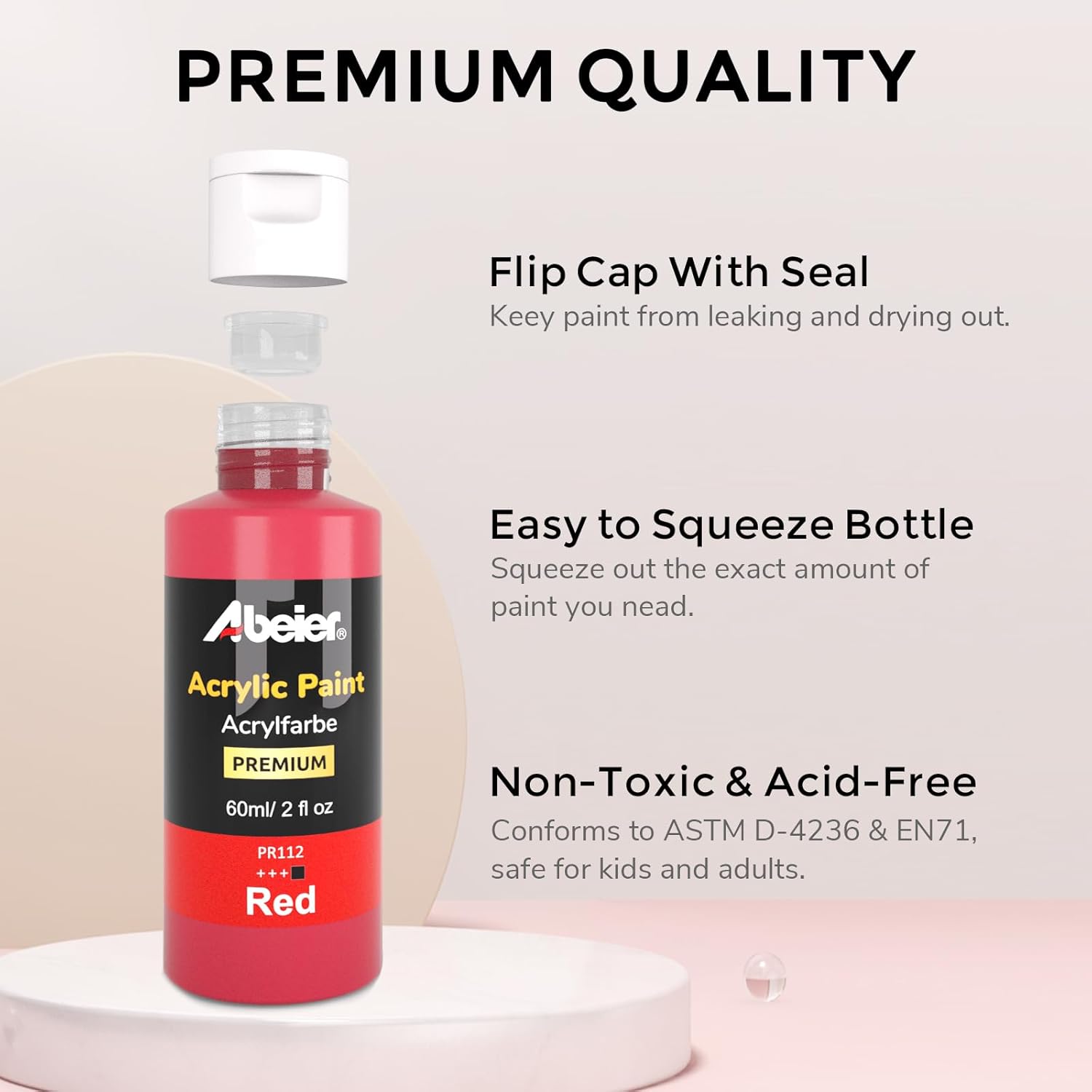 ABEIER Acrylic Paint Set, 56 Colors (2oz/60ml), Matte Finish, Waterproof, Rich Pigments, Non-Toxic Paints for Painting on Canvas Crafts Wood Ceramic, Fabric Ideal for Beginners and Students