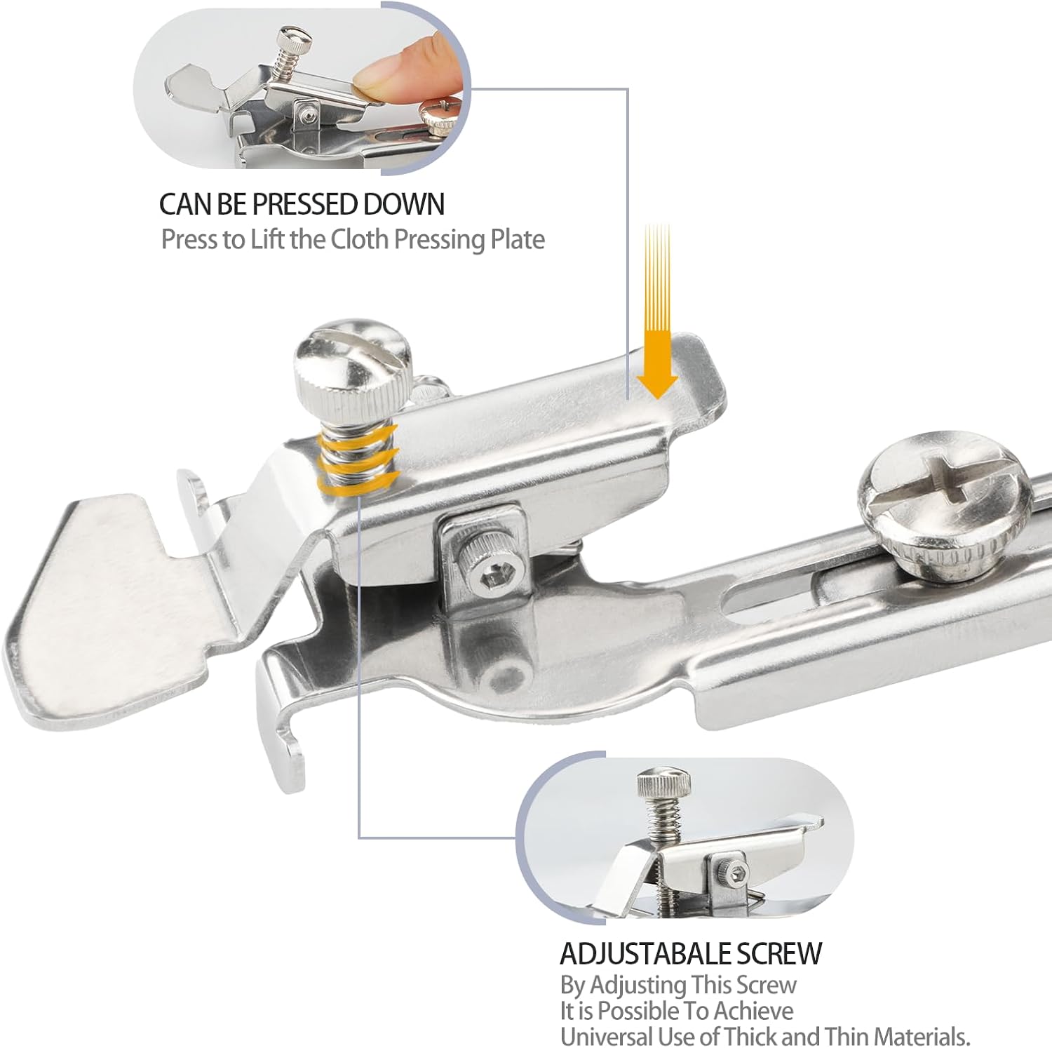 - Simple to use:This powerful sewing machine accessories make it easy for you to mount and adjust this tool to any position of the metal throat plate; It helps you set seam allowances and sewing straight line,positioning,anti-curling to reduce mistakes and uneven stitching,and sure won't move or shift,wear-resistant to serve you for long time.
