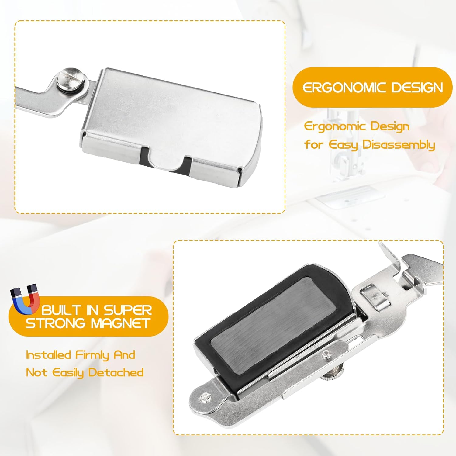 - Wide application:This magnetic seam guide is widely applied in the clothing industry and home sewing work, working well with most sewing machines on the market, it improves the efficiency of clothing making,and helps organize the fabric for straighter, more exact, uniform seam lines.