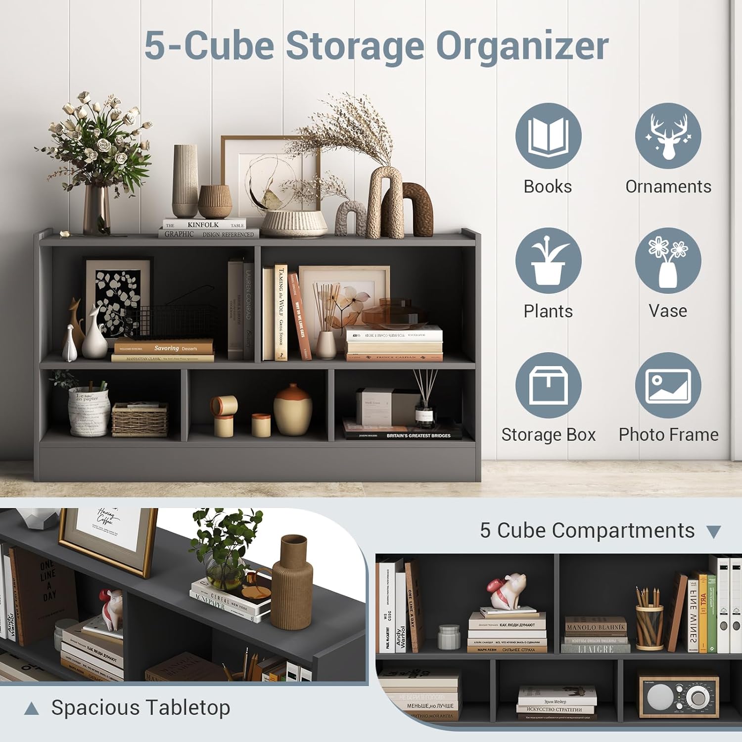 LOKO 2 Tier 5 Cube Bookcase, Open Shelf Storage Cabinet, Wooden Display Cabinet Shelf, Multipurpose Bookshelf for Living Room, Bedroom, Hallway, Home Office, Classroom (Grey)