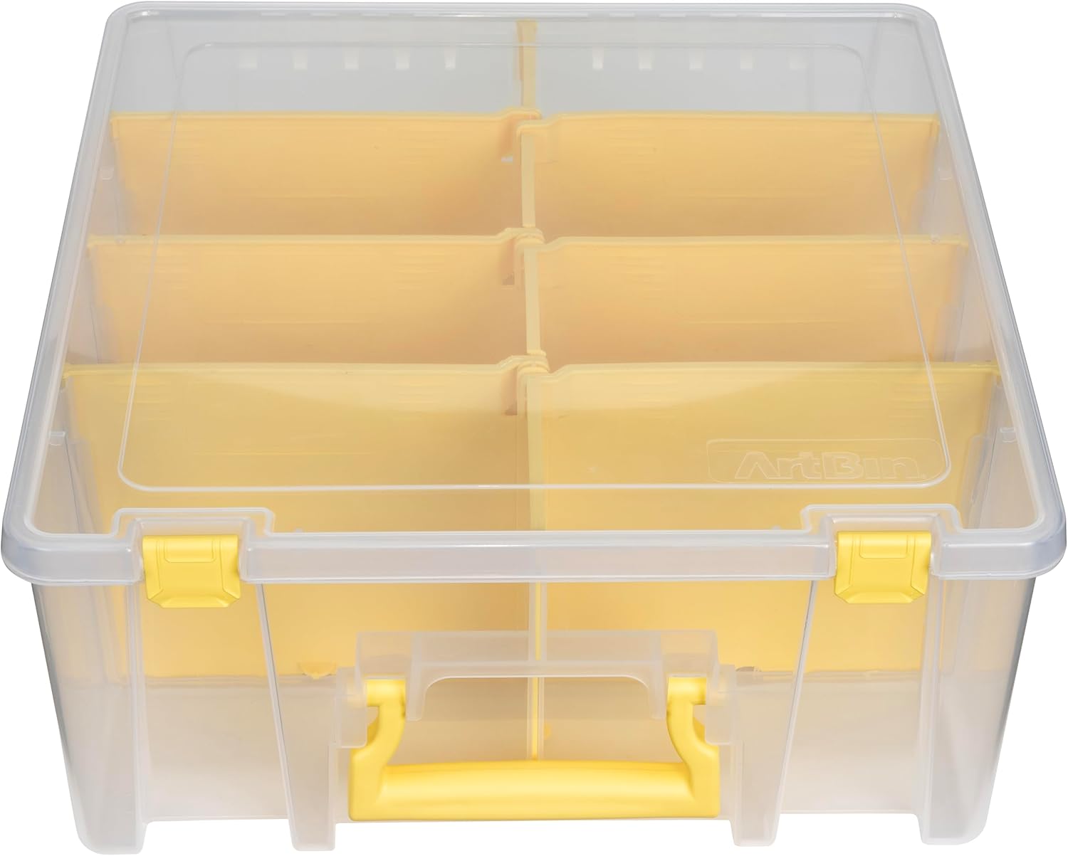 ArtBin 6990JY Super Satchel Double Deep Compartment Box - Art Storage with 8 Removable Compartments, Smart Closure for Craft Supplies (Yellow- Pack of 1)