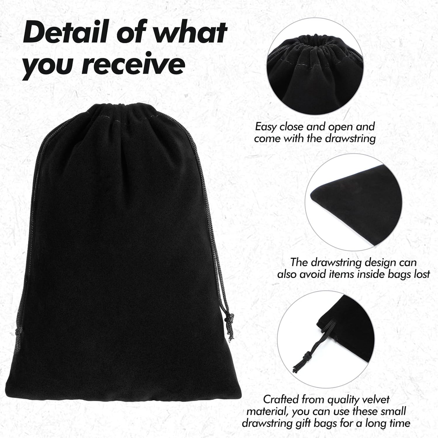 - Drawstrings Designs: the small velvet pouch comes with a practical drawstring design, making the opening and closing of the pouch effortless; The tightness can be adjusted to avoid your jewelry from falling out and getting lost; When tied in a bow, the bag can also be showcased as an attractive gift