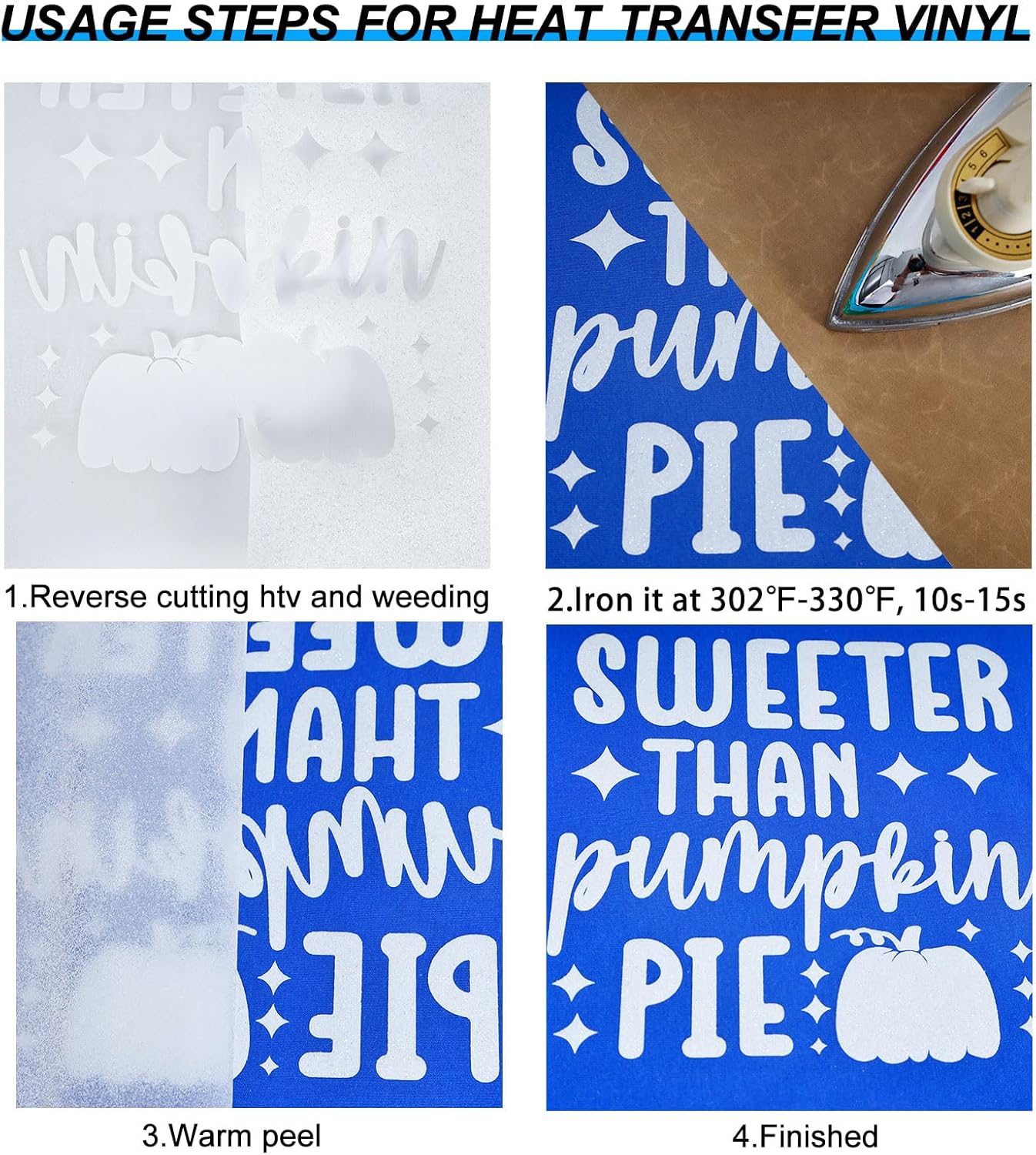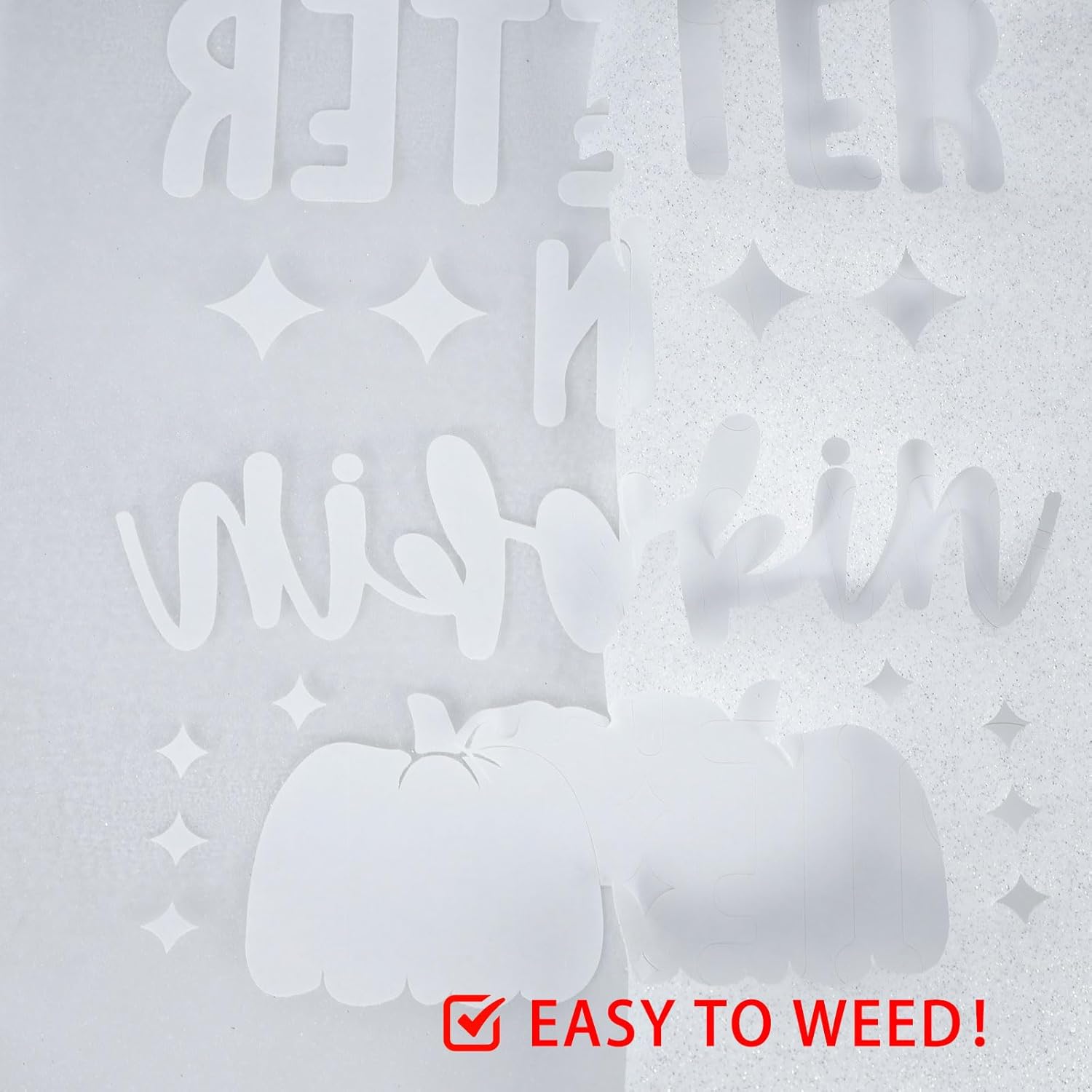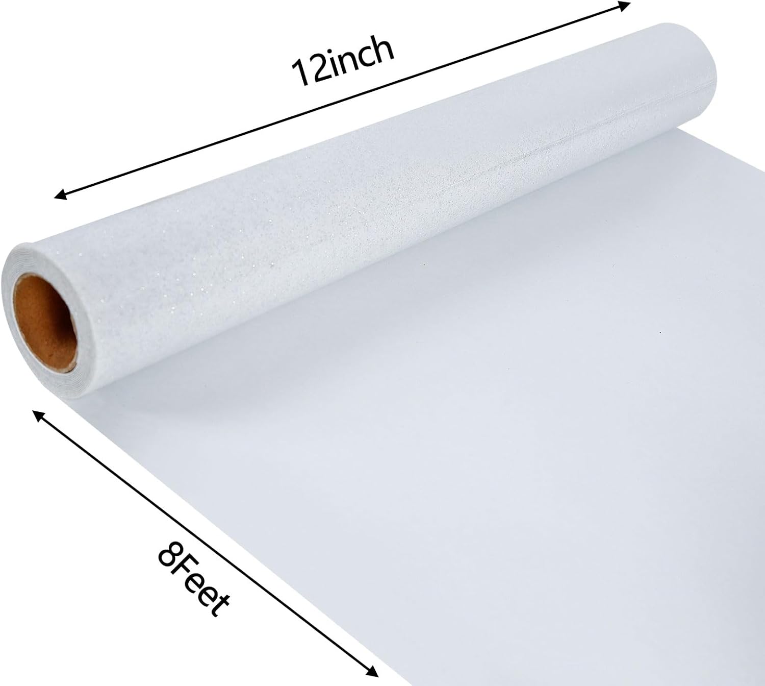 - EASY TO CUT & WEED & TRANSFER: Our white glitter HTV Vinyl rolls is sensitive to temperature and pressure, which can be quickly and easily to weed and peel. It is compatible with all cutter machines, most heat presses and household irons on the market, and perfect for 12x12" and 12x24" cutting mats. You can easily apply adhesive backing HTV to fabric using a hot iron or hot press. Please note that it is warm peel
