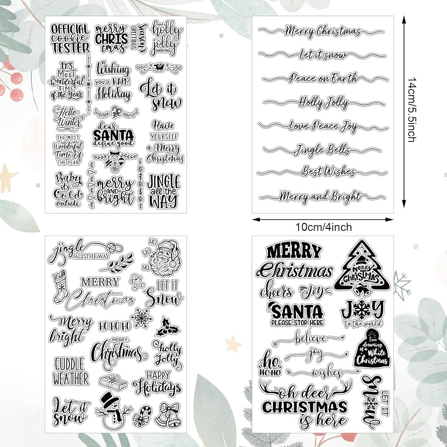 Whaline 4 Sheet Christmas Words Clear Stamps Greeting Words Santa Xmas Tree Pattern Silicone Transparent Stamps Border Stamp Cards for DIY Craft Card Making Scrapbooking Embossing Album Decor