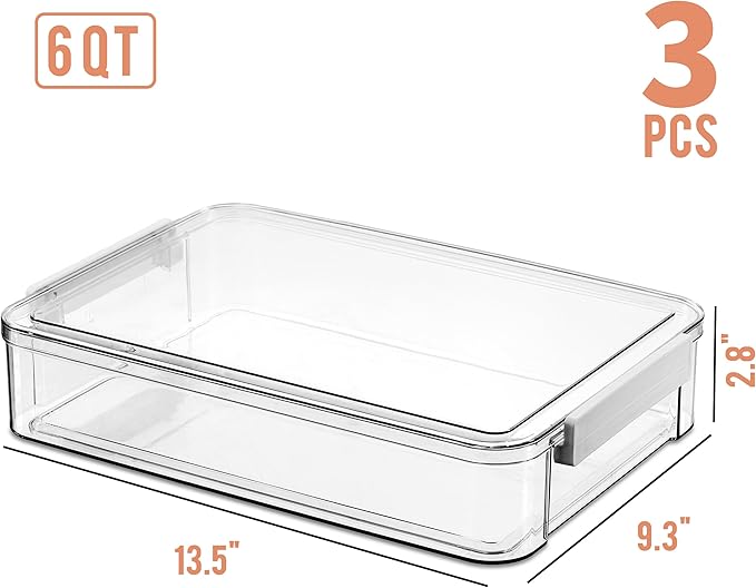 Citylife 3 PCS 9 x 13 Plastic Storage Bins with Lids and Latches, Portable Art Supply Storage Organizer, Paper Storage Box for Organizing A4 Paper, Letters, Documents, Art Supplies, and Crafts