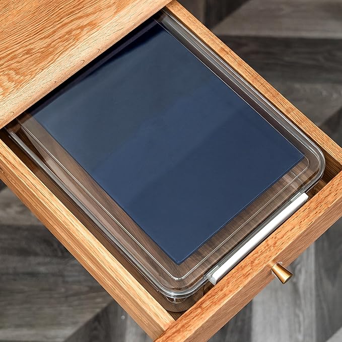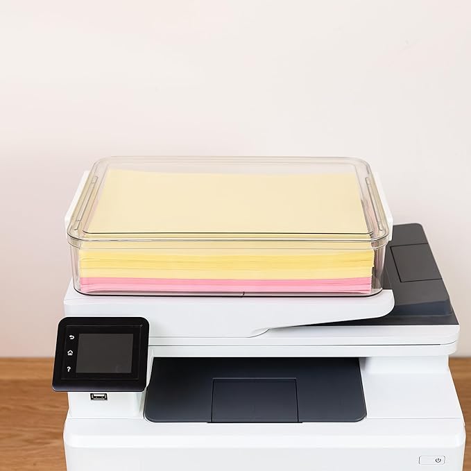 - Convenient Stackability: These paper storage organizers feature cleverly designed grooves on their lids, enhancing stacking stability. Multiple flat storage containers can be easily stacked together, efficiently optimizing your use of space.