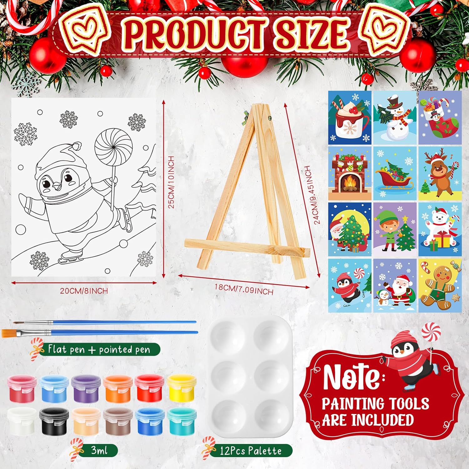 - Different Styles: our drawn canvas offer a variety of 12 different Christmas themed styles to choose from; This design can make sure there's a style that fits your taste and preference; Whether you're a beginner, a paint and sip going enthusiast, or an expert painter, our painting canvases with pictures to paint will help you craft stunning artworks effortlessly; Get ready to dive into the world of colors and creativity with our pre drawn canvas paint kit