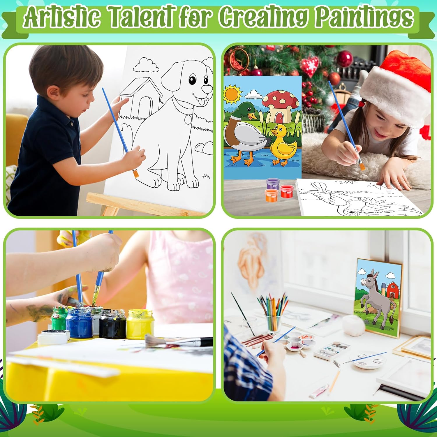 - Value Package: pre printed canvas for painting package includes 12 pre painted canvases, 12 paints in12 colors, 12 flat pen, 12 pointed pen, 12 palettes in 6 colors, 12 wooden easels; Whether you have an art party or just want to relax and paint, canvas with pictures to paint has got you covered; Note: the paint set is placed in the back of the drawing board