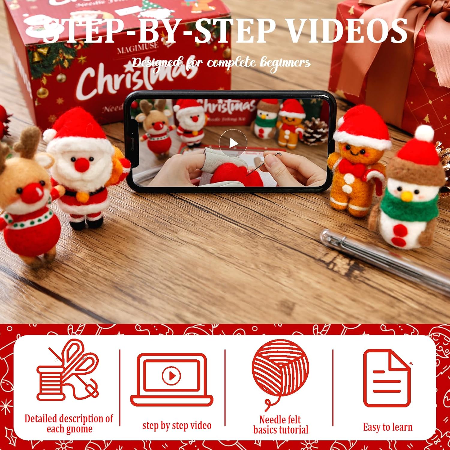 MAGIMUSE Needle Felting Kit, Needle Felting Starter Kit with Basic Felt Tools, Christmas Needle Felting Kit for Beginners, DIY Wool Needle Felting Supplies for Christmas Festival Crafts
