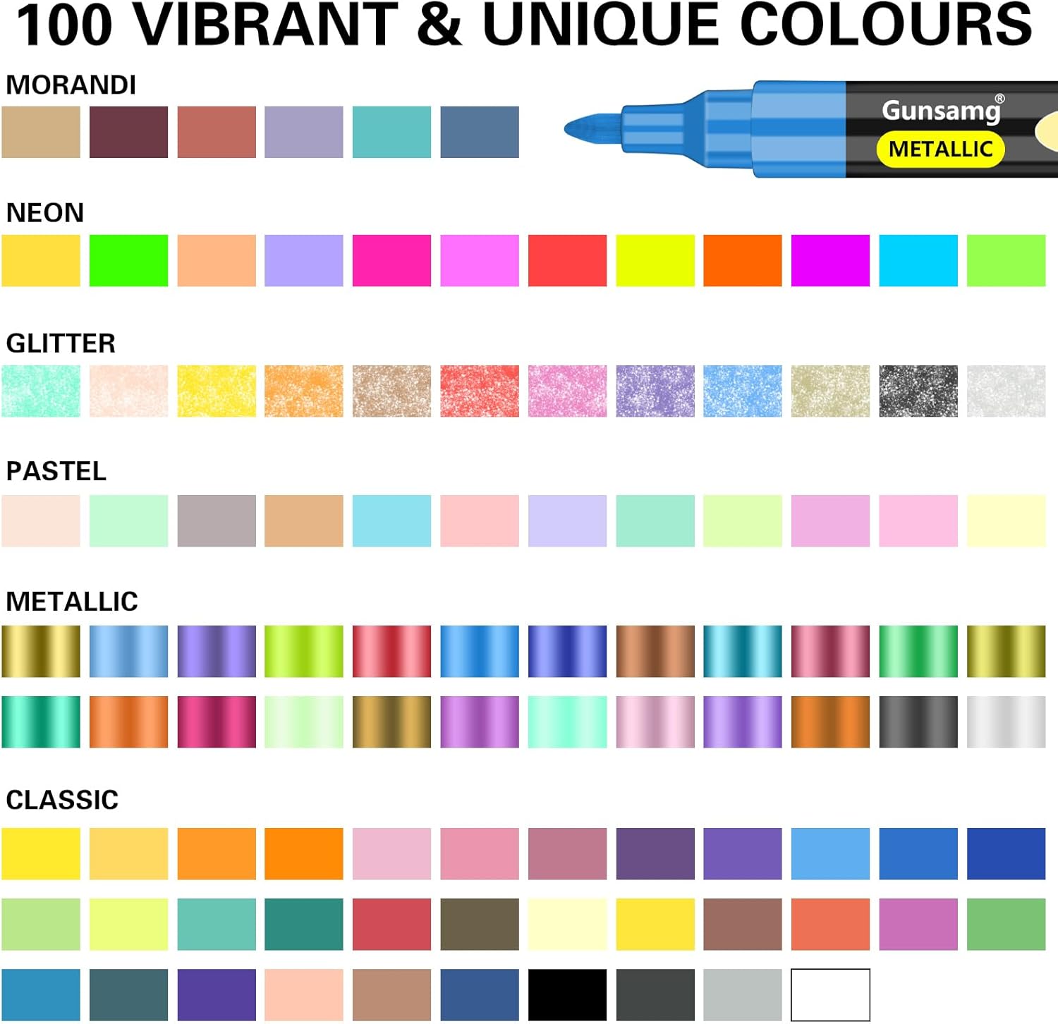 Gunsamg Fine Tip Acrylic Paint Markers – 100 Colors Acrylic Paint Pens for Rock, Glass, Wood, Stone, Ceramic, Fabric, Metal, Canvas – Permanent Waterproof No Bleed Paint Pens for Crafts & Art Supplies