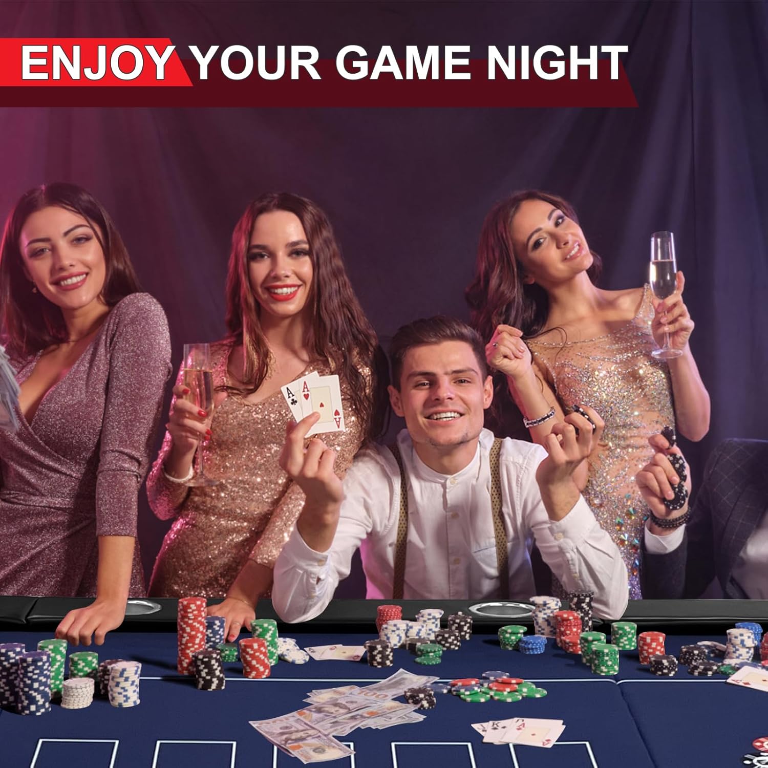 - Sturdy and Durable: This folding poker table is made of MDF frame and powder-coated steel legs, sturdy and durable. Non-slip feet on the bottom of the table legs ensure stability and prevent the floor from being scratched.