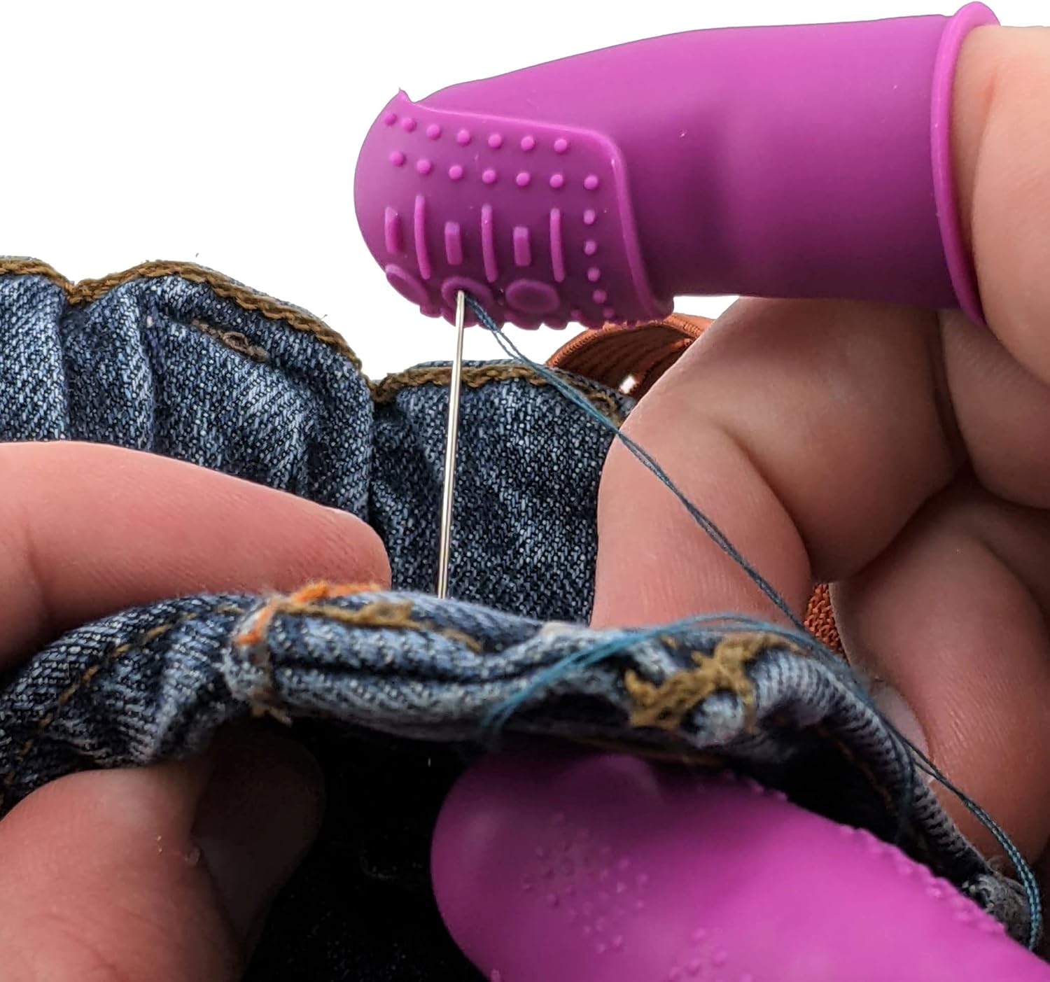 - USE-CASE: This item is most popular with 1) Elderly women 2) Girls & Teens who are just learning to sew. Why? Both groups love the THIKibility, ease of use and finger tip protection. Plus! These are perfect for moms with kids during hot glue projects - the THIK-Grip timble has has thermal-protection properties, so an accidental hot glue drip avoids direct contact with the skin and keeps fingers safe!