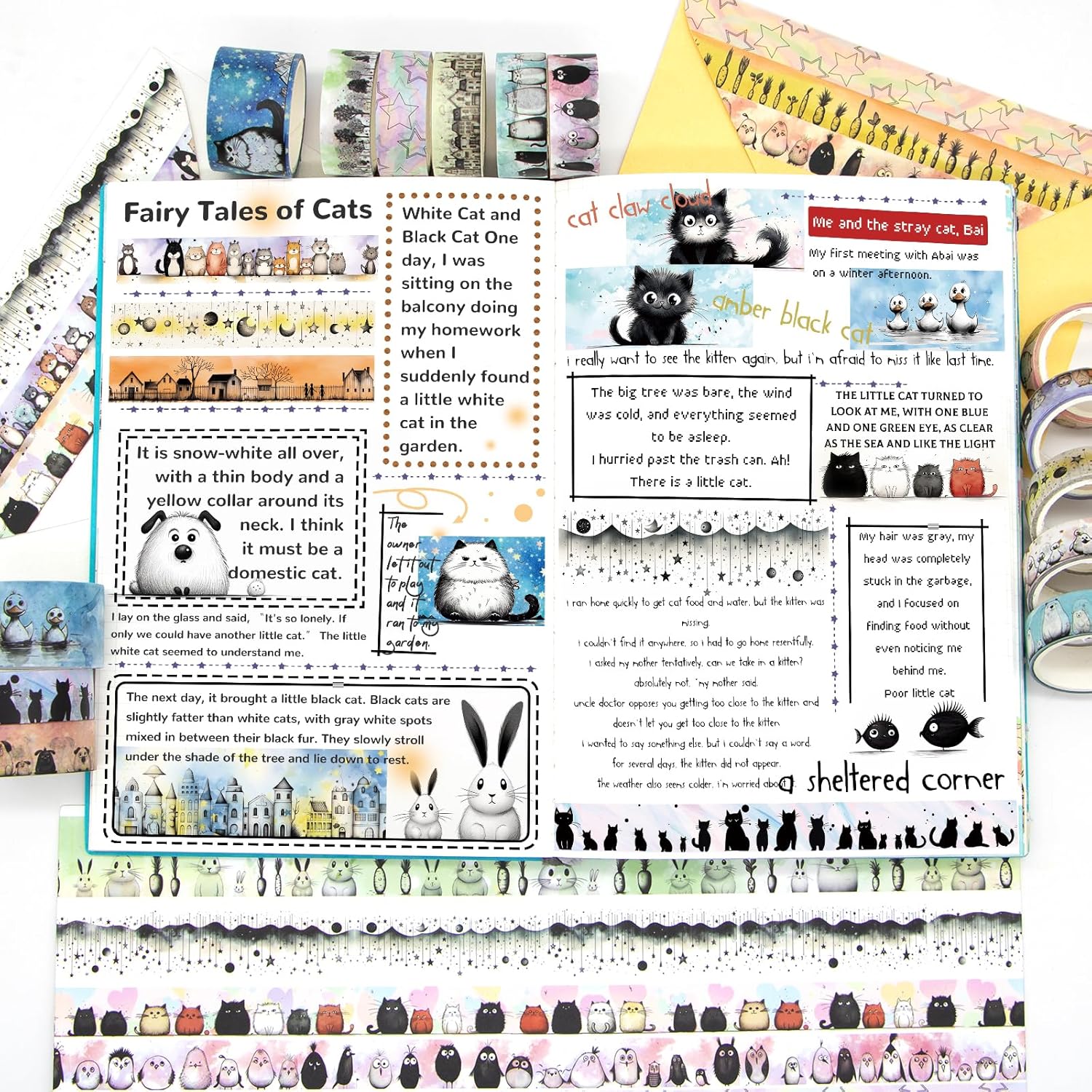- Pet Washi Tape Set - Contains 24 rolls of different patterns of washi tape, cute black cats, dogs, ducks, chickens, rabbits, as well as chubby polar bears, bears, penguins, etc. Kids and your friends can't refuse this adorable animals washi tape stickers.