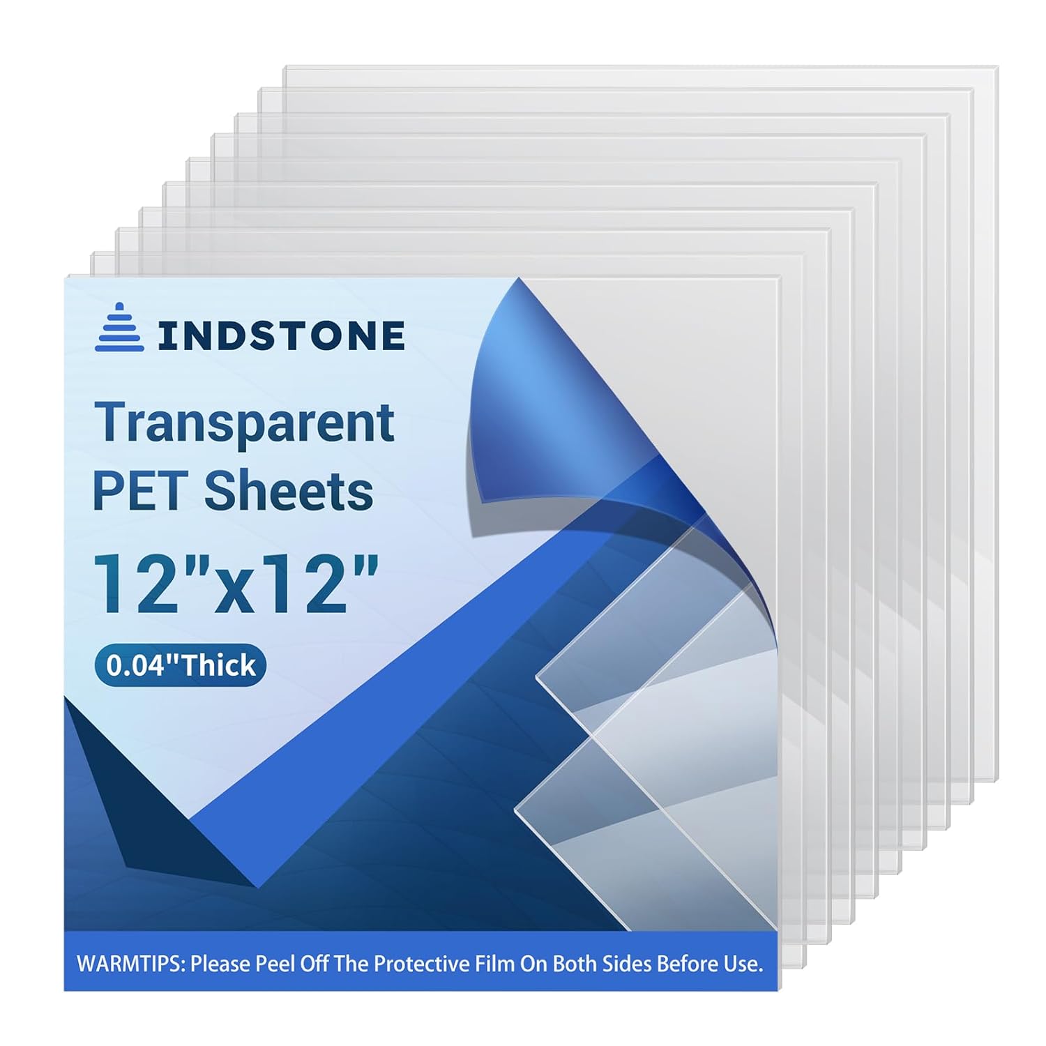 10 Pack 12โx12โ x0.04โ Clear PET/Plexiglass Sheet, INDSTONE Transparent Flexible Plastic Sheet 12x12, Clear Plastic Sheet for Crafts, Picture Frames, Painting, Sign Blank