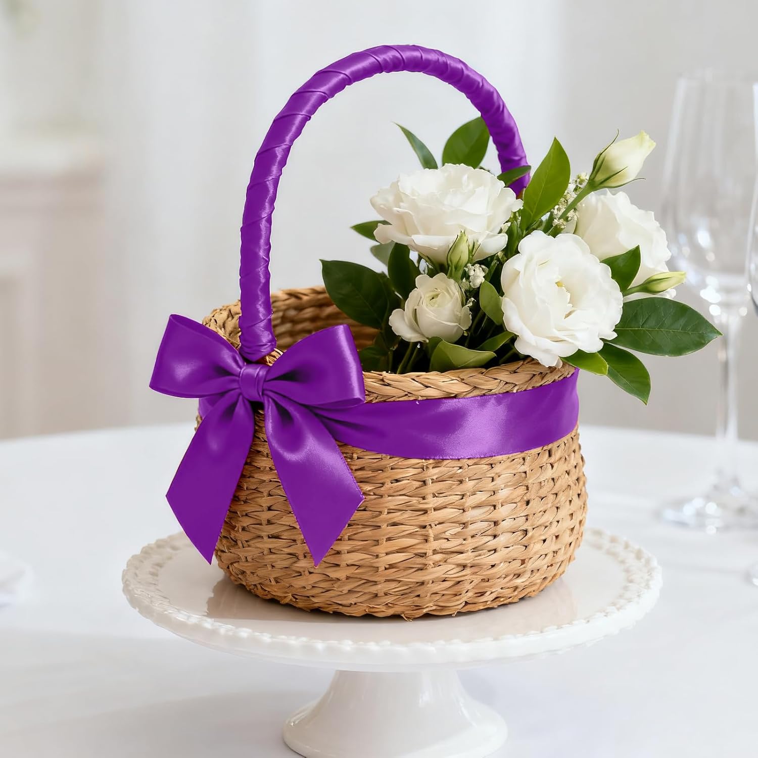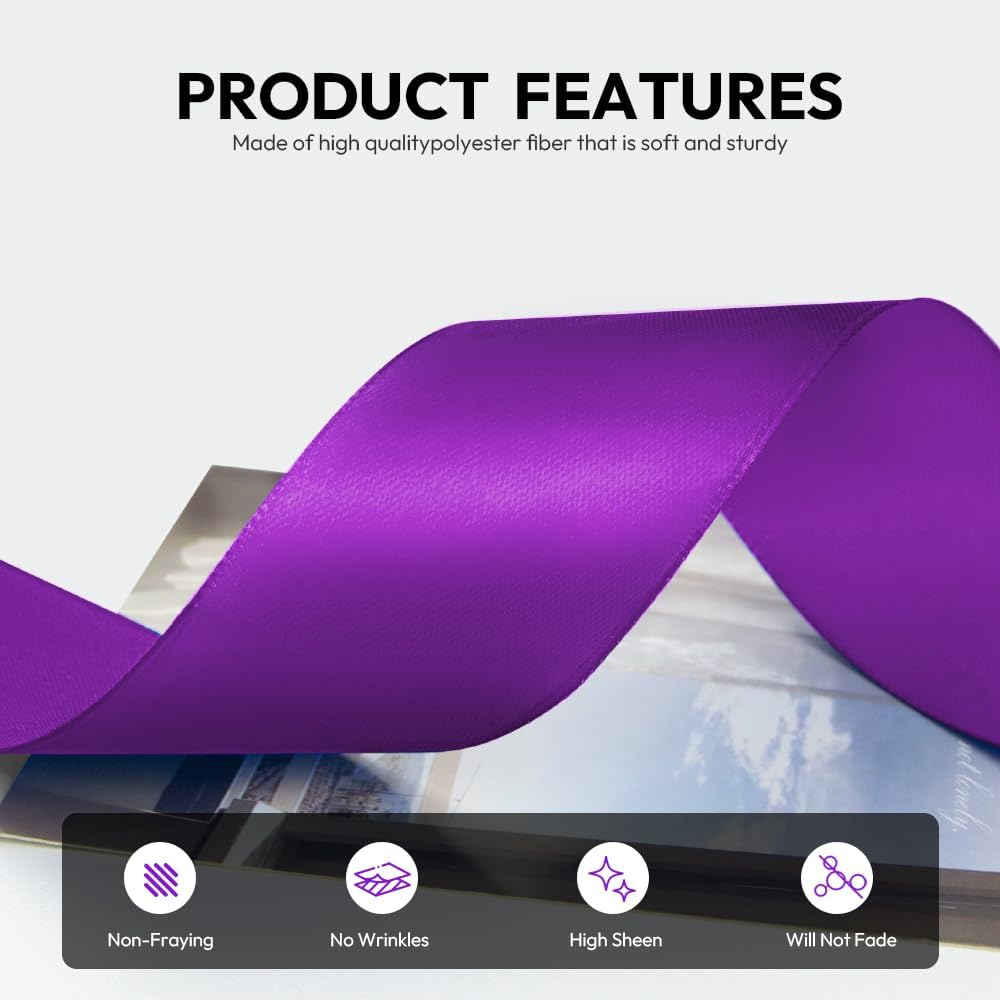 - 【High Quality】: Our fabric satin ribbon is made of 100% high-quality polyester. The single face ribbon for gift wrapping is Purple color and has smooth texture which is easy to cut and use.
