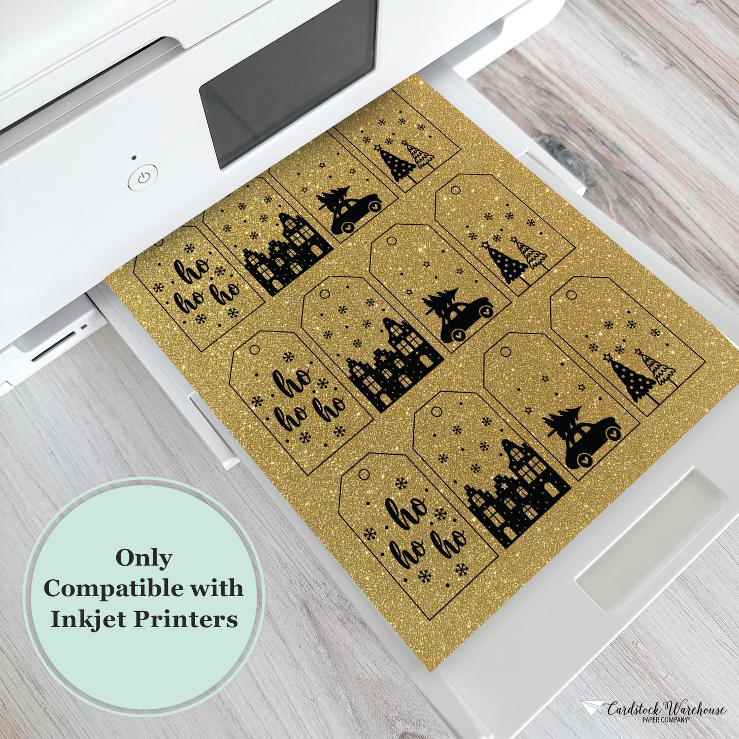 Cardstock Warehouse Diamond Print Inkjet Glitter - Premium Gold Glitter Cardstock Paper โ 15 Sheets, 8.5 x 11" - 104 lb/280 GSM for Inkjet Printing, Die-Cutting, Card Making, Crafts, and DIY Projects