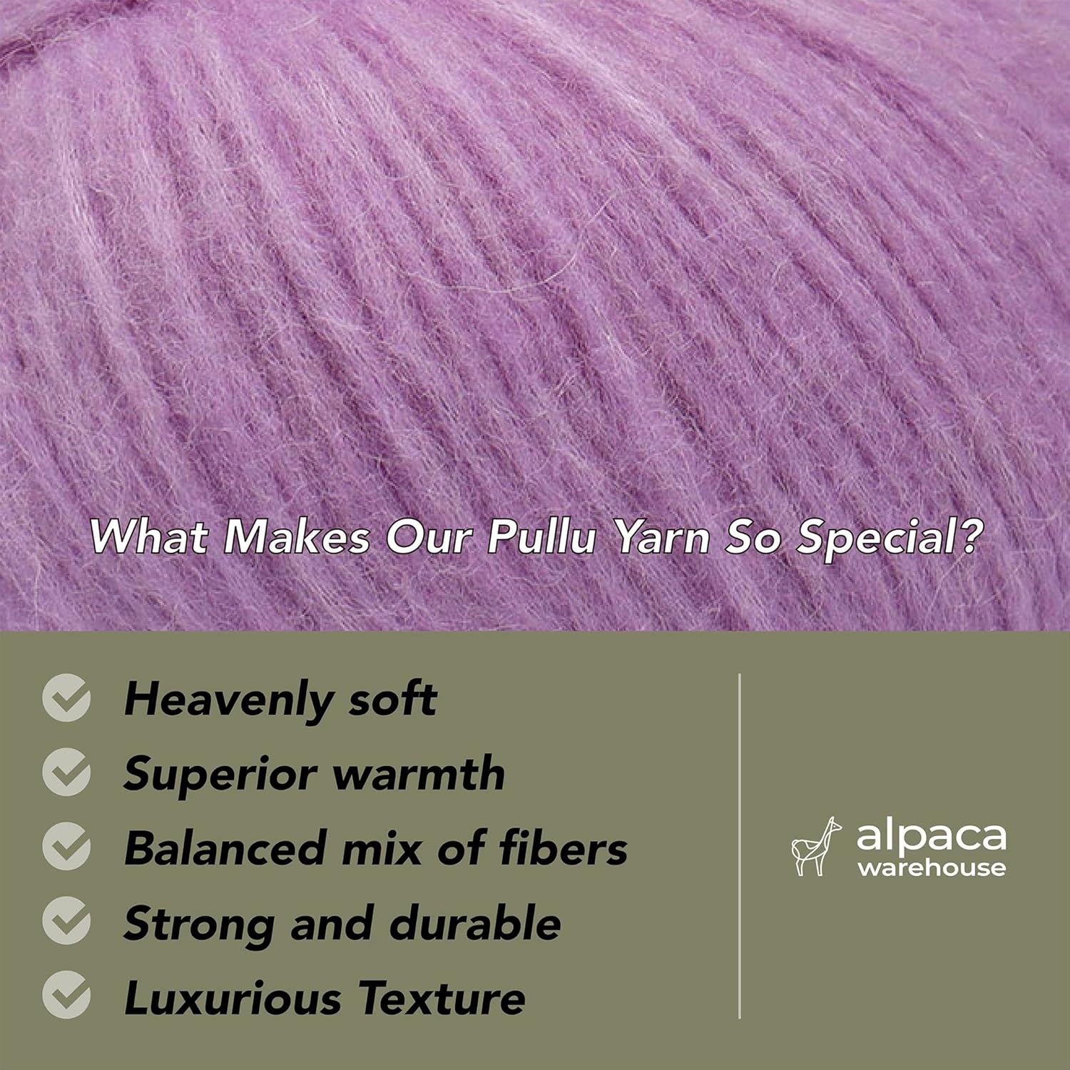 Pullu - Baby Alpaca Merino Wool Yarn Set of 3 Skeins (150 Grams) Worsted Weight - Sourced Directly from Peru - Heavenly Soft and Perfect for Knitting and Crocheting (Lavender Fields)