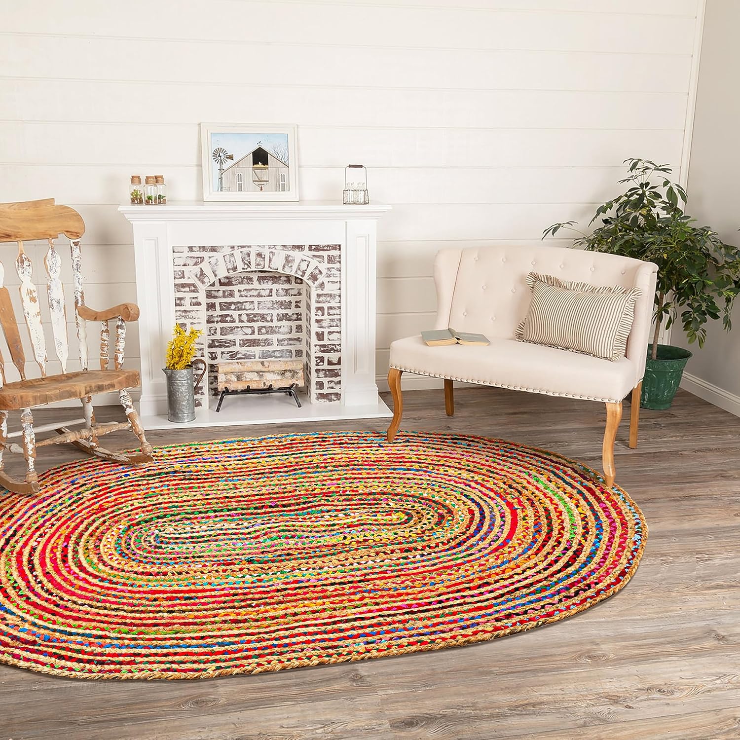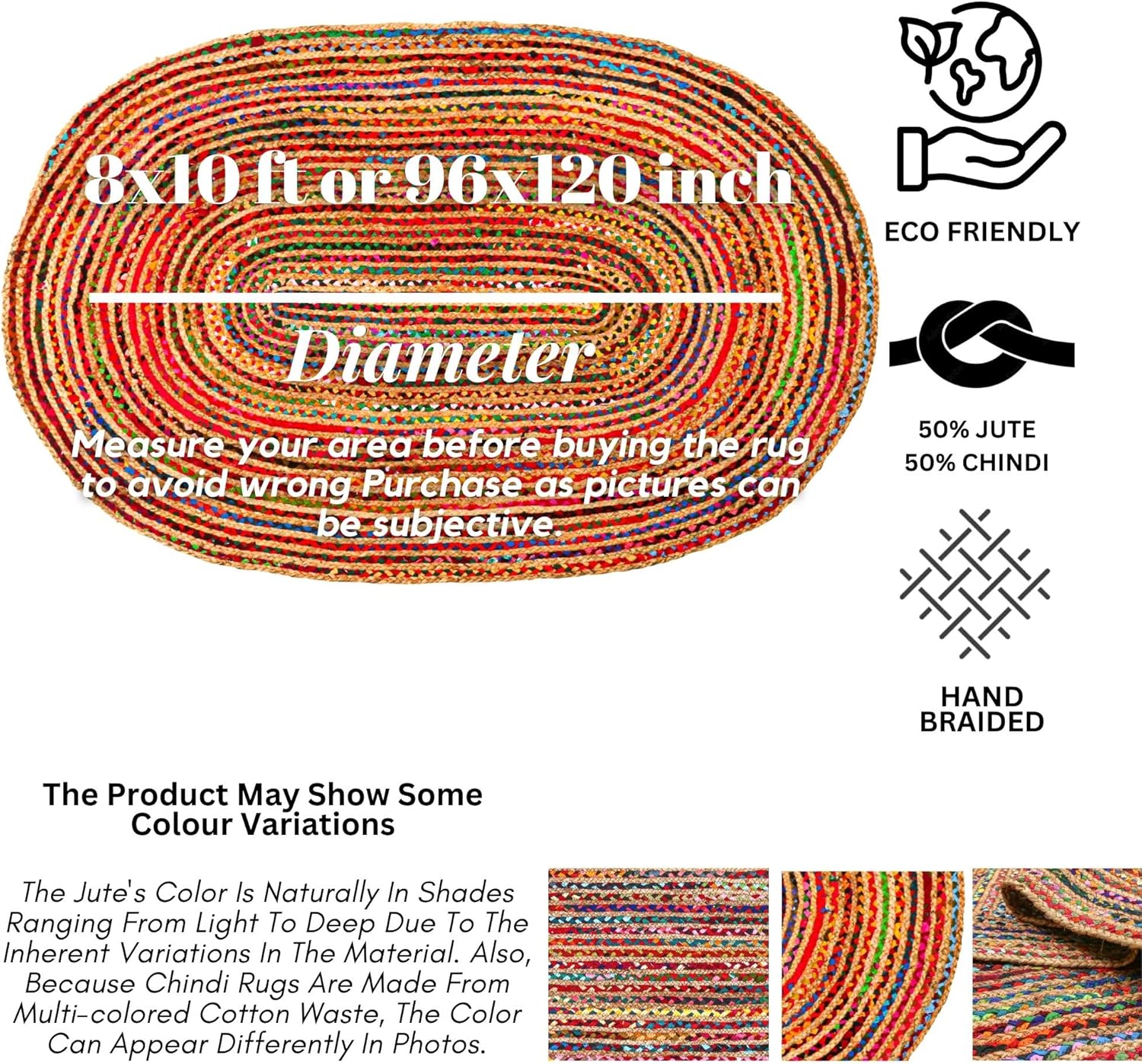 8'x10' Handwoven Jute Chindi Area Rug - Colorful Boho Rugs for Living Room - Hand Braided Multicolor Bohemian Rug for Farmhouse, Bedroom, Dining Room, Classroom, Hallway, Kitchen, Office
