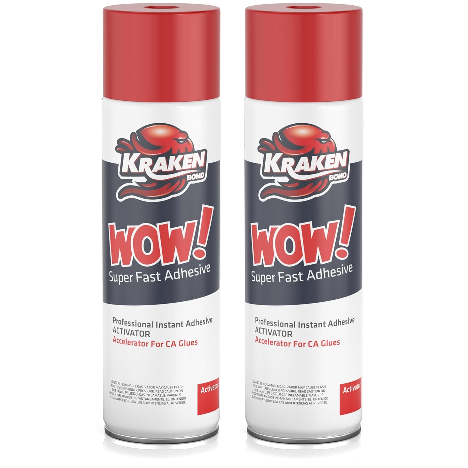 KRAKEN BOND Wow! Spray Adhesive Activator(2X16.9 Oz.) - Cyanoacrylate Super Glue Accelerator Spray for Plastic, Metal, Wood & PVC, CA Glue Activator | 2 Pack