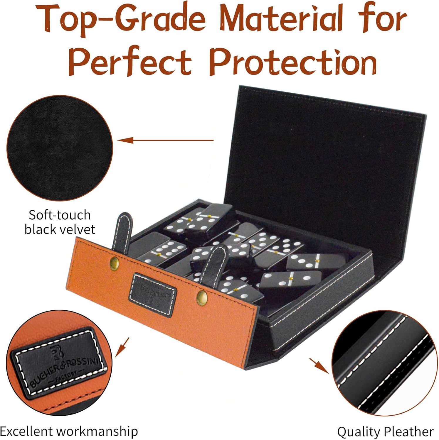 - LUXURY LEATHER CASE: Comes with luxury pearl leather case for convenient storage and organization,providing a sturdy and durable domino game set that will last for years of enjoyment.