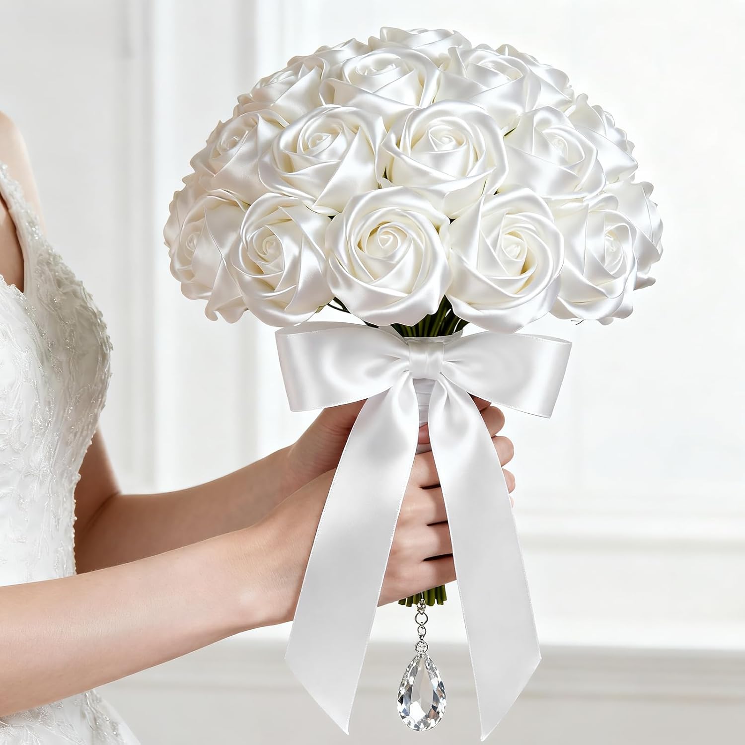 1" x 50 Yards Satin Ribbon - White Silk Ribbon with Spool - Ideal for Gift Wrapping, Floral Bouquets, Crafts, Wedding Party Decorations, Christmas and Sewing Projects