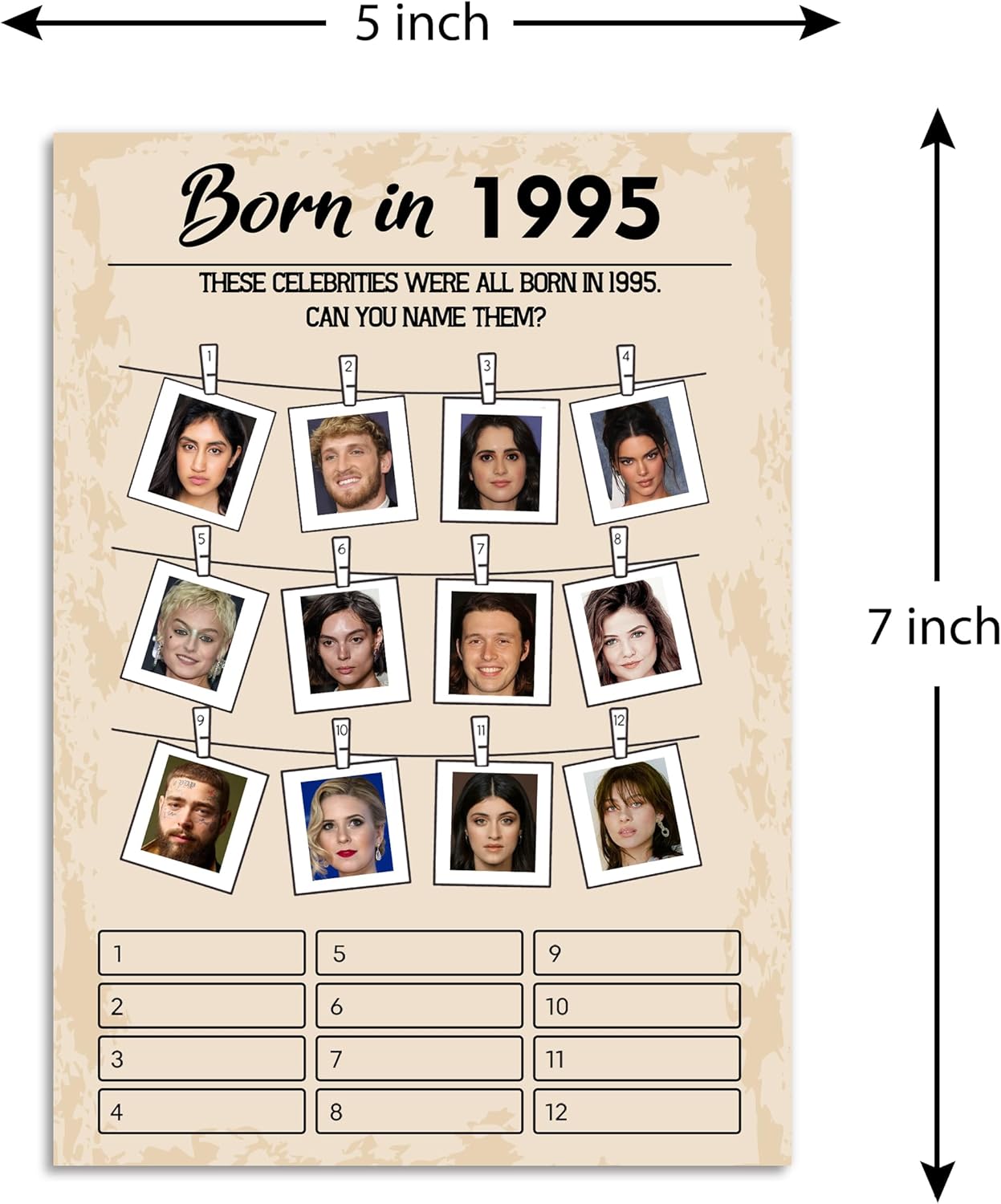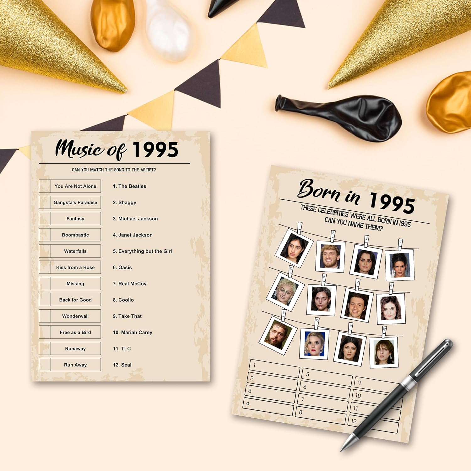 - What’s included in the 30 Birthday Games Bundle: respectively [Guess the Celebrity Also Born in 1995], [Music of 1995], [Movies in 1995], [Price is Right] and [Who Knows Best]