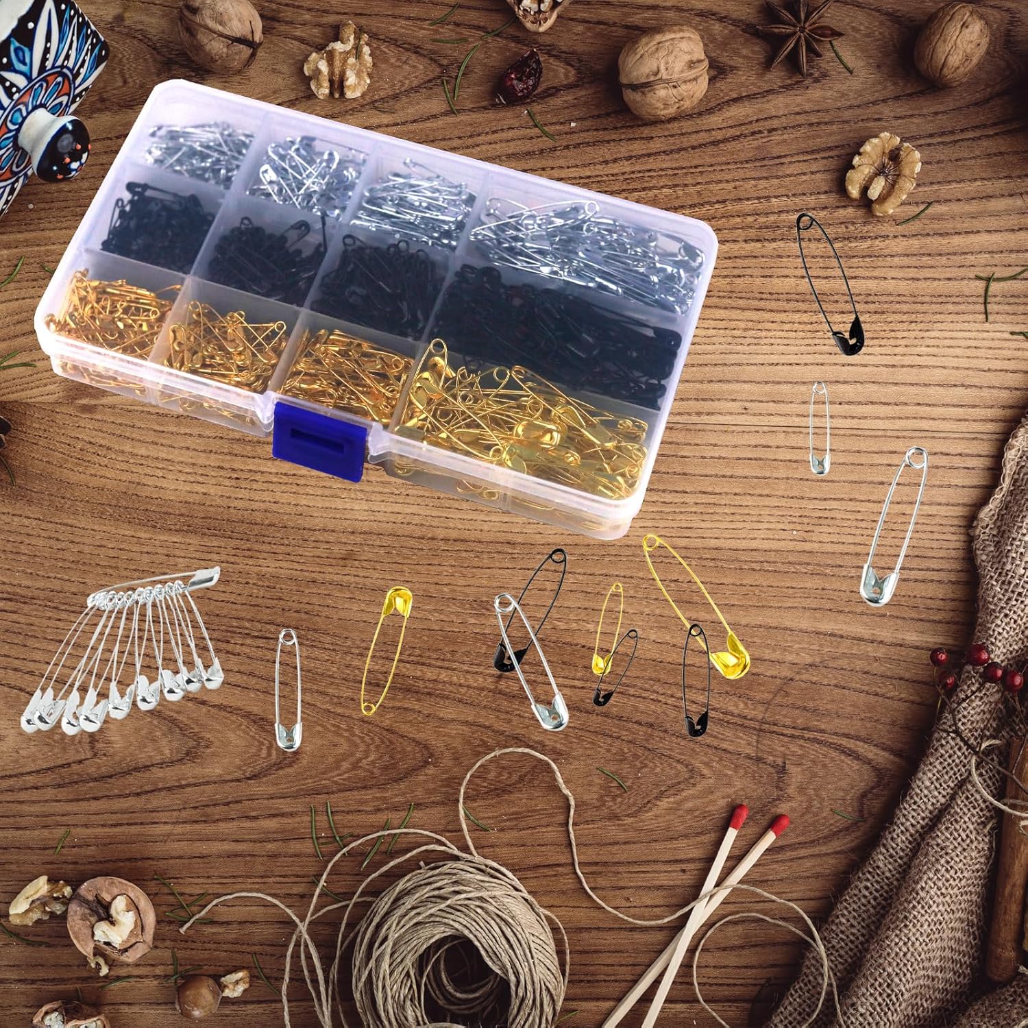 - Easy to Storage and Use: The safety pins are classified and placed in a transparent box. You can pick up the safety pins of various colors and sizes according to your needs in different compartments of the box, without any effort to find them, which is convenient and fast