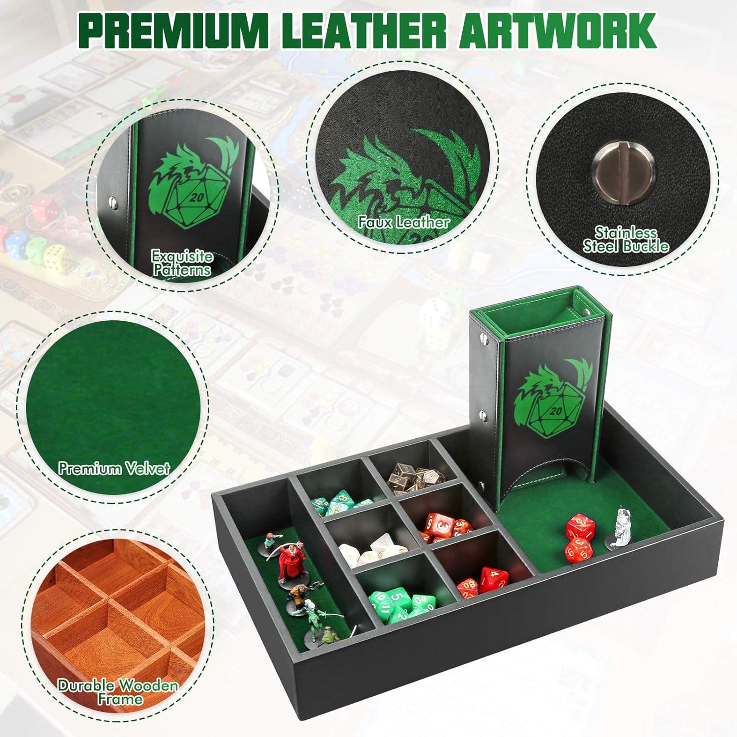 DND Dice Tray & Tower Storage Box, 4 in 1 D&D Dice Holder Case (Dice Rolling Tray, Dice Roller Tower, Dice & Miniature Storage), Great RPG Accessories Gifts for Dungeons and Dragons MTG DM & Player