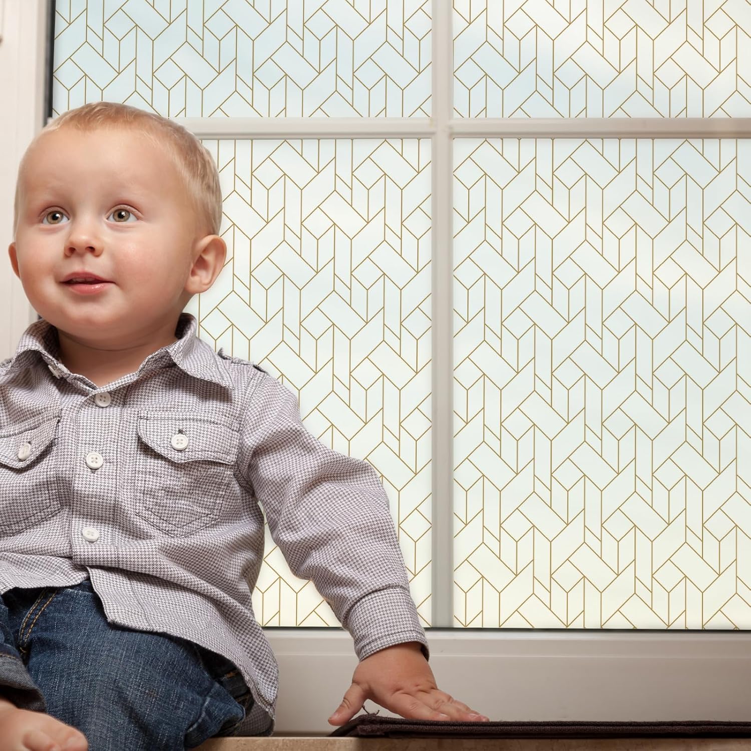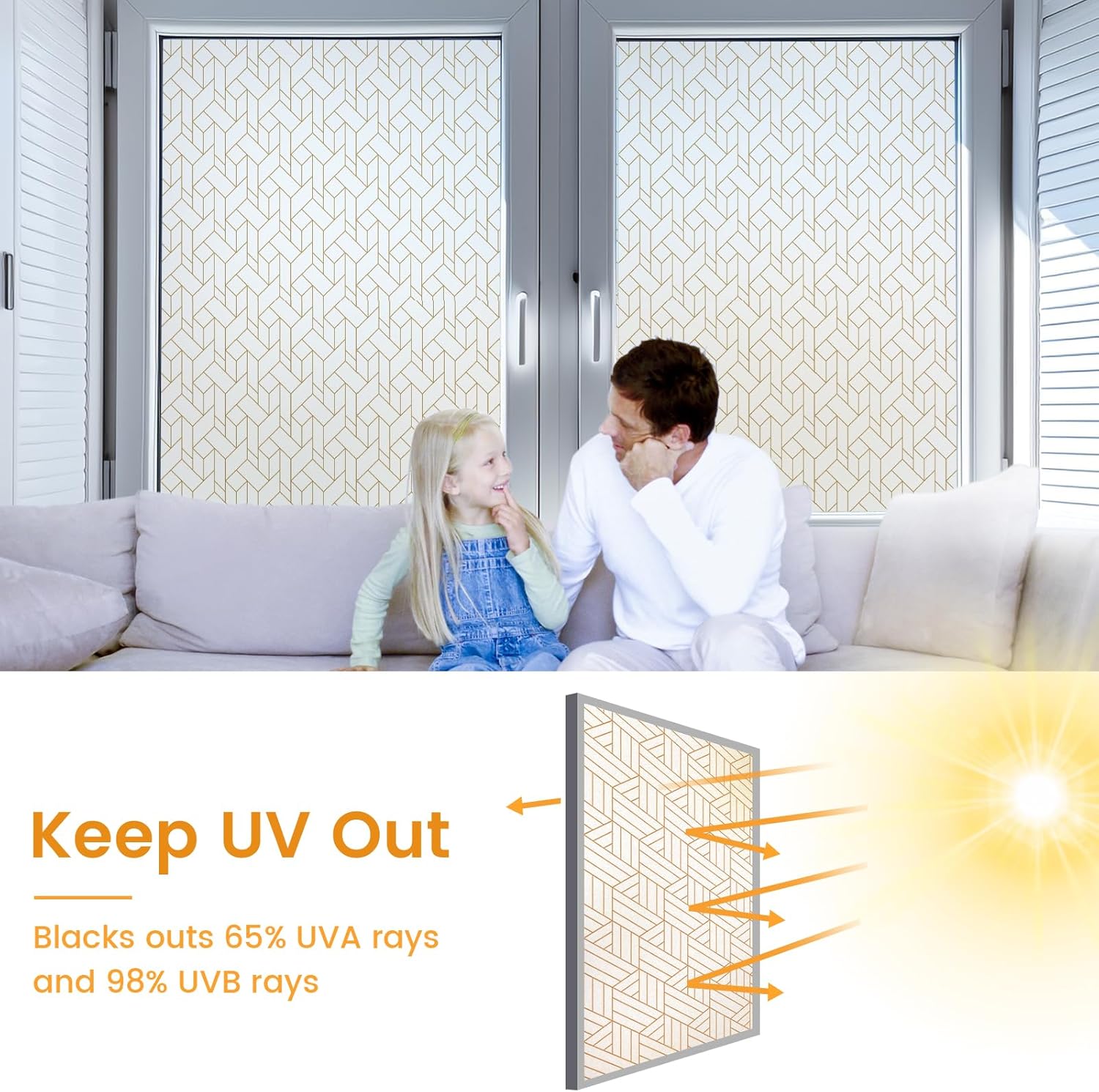 DKTIE Geometric Art Stained Glass Window Film Bathroom Window Privacy Film Frosted Glass Static Clings Non Adhesive with Installation Tools, Modern Home Improvement Style (S120, 17.7'' x 78.7'')
