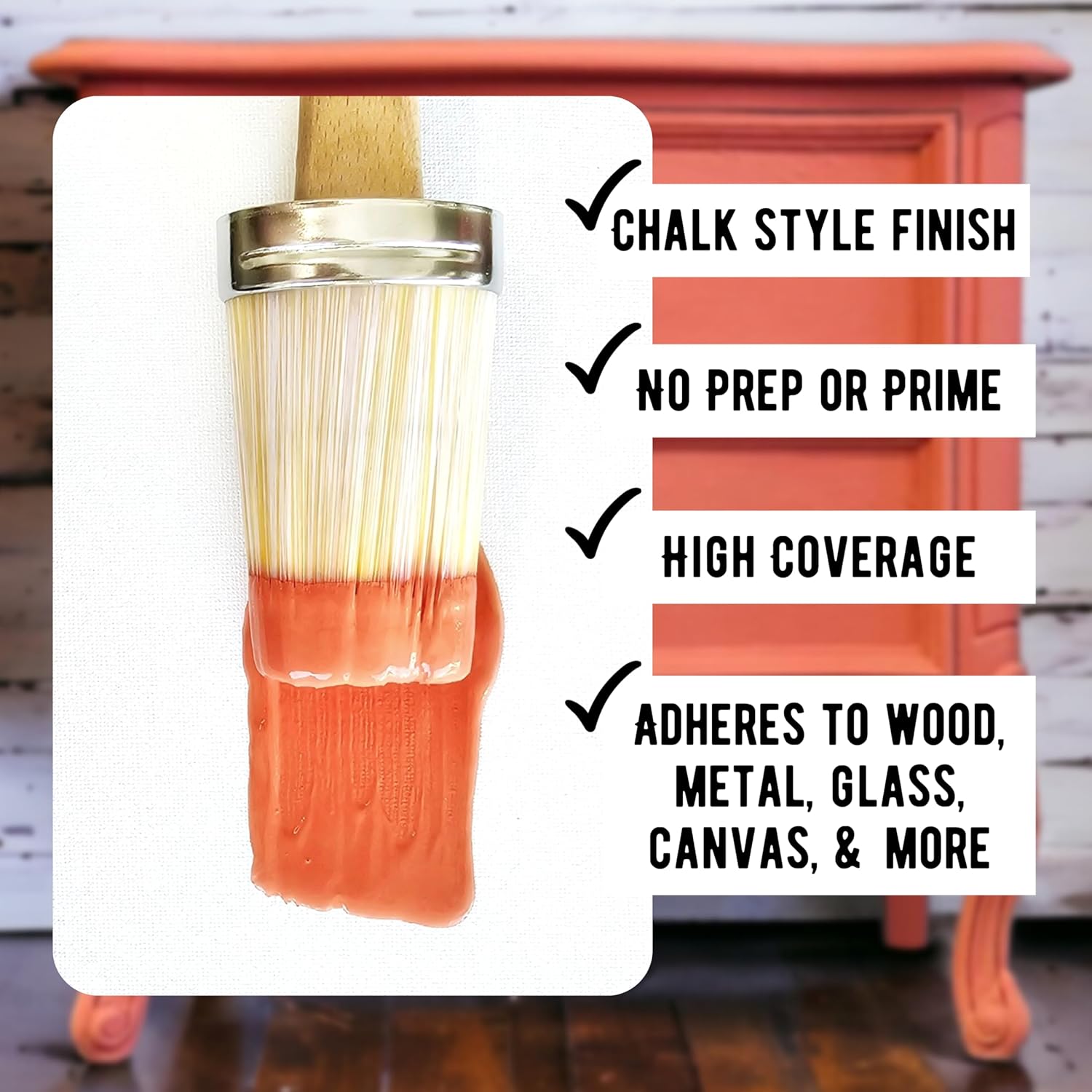 - Unmatched Versatility: Our Premium Chalk Paint for Furniture stands out as the ultimate choice when looking for paint for dressers, paint for tables, paint for desks or paint for crafts and home decor. Our water-based formula has unlimited possibilities and adheres to most surfaces. The consistency and texture give your project a vintage or country chic painted look. Our chalk paint formula is ultra-low VOC, Reconstitutes with water, and blends beautifully and has very little odor.