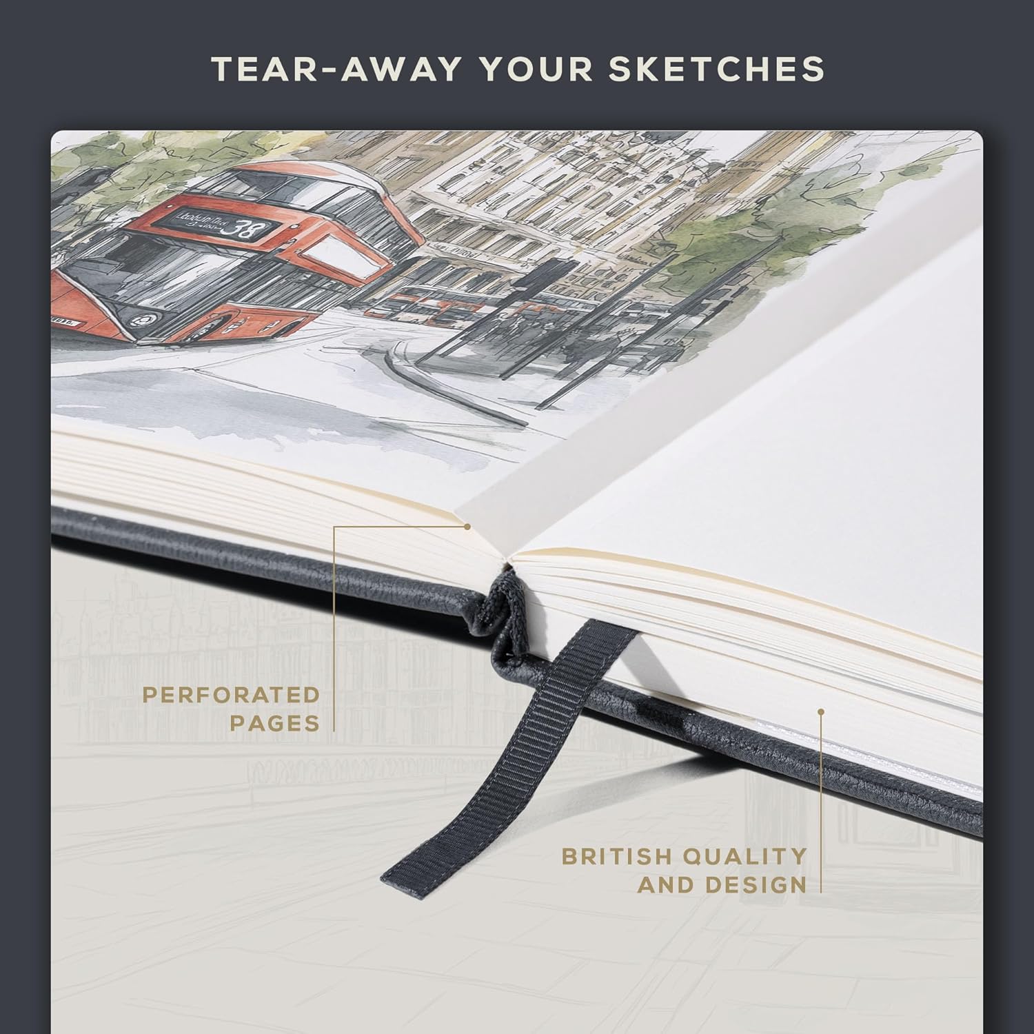 - Elegant & Durable Construction - Built to last with a robust vegan leather hardcover and thread-binding, this Square sketchbook combines timeless British-inspired design with lasting reliability for your artistic vision.