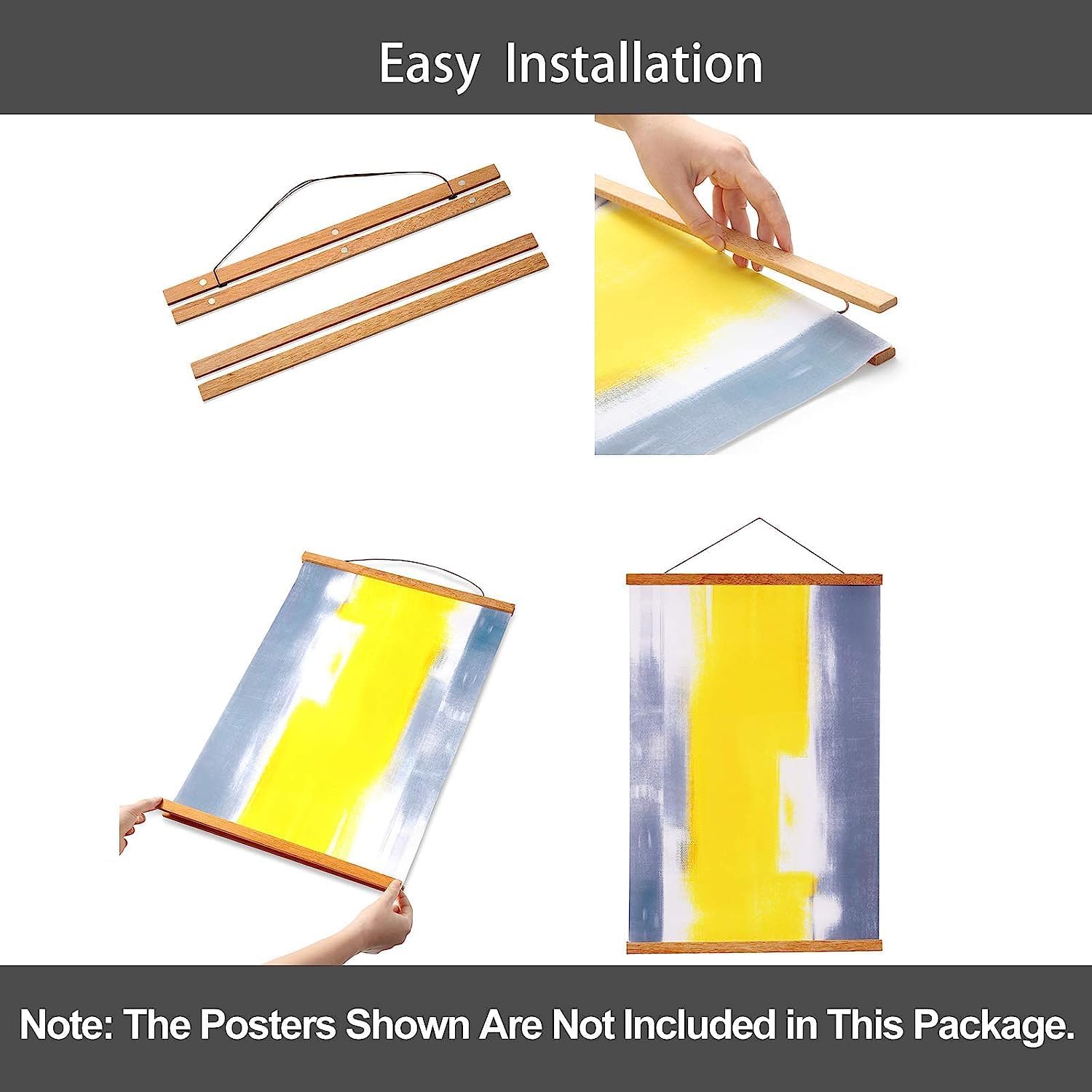 - Quick Assembly and Easy Use: This poster hangerās solid wood magnetic dowels clip onto the printās top and bottom, allowing you to change out the art whenever you want without damaging them