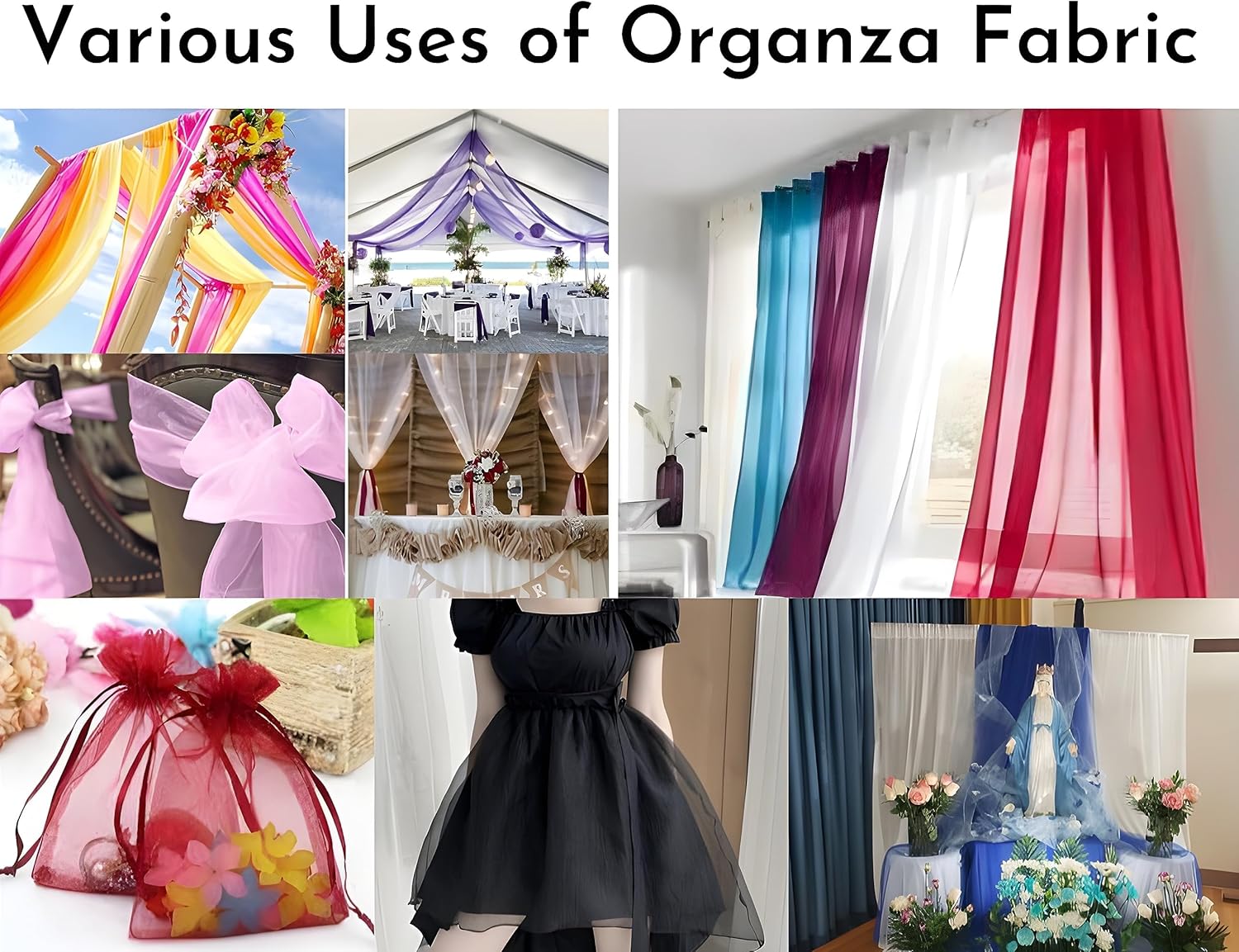 - ⨠Spark Creativity: Elevate events with organza's sheer elegance! Perfect for weddings, gatherings, holidays and arch decorations. Ideal for events like birthdays, baby showers, bridal showers, and graduation parties. From crafting to draping, it adds elegance to table accents, stage backdrops, and entrance decor.