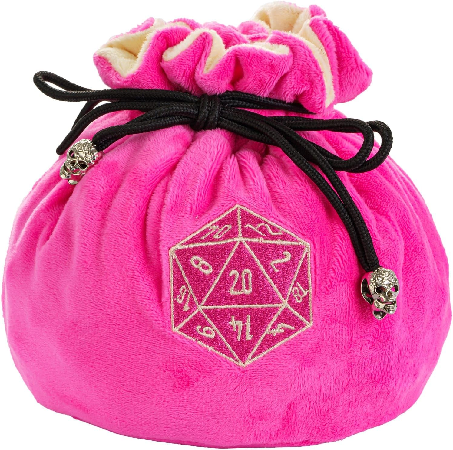 DND Dice Bags Large with Pockets Pink Storage Bag with D20 Logo for RPG Game Dices - Capacity 200+ Dice