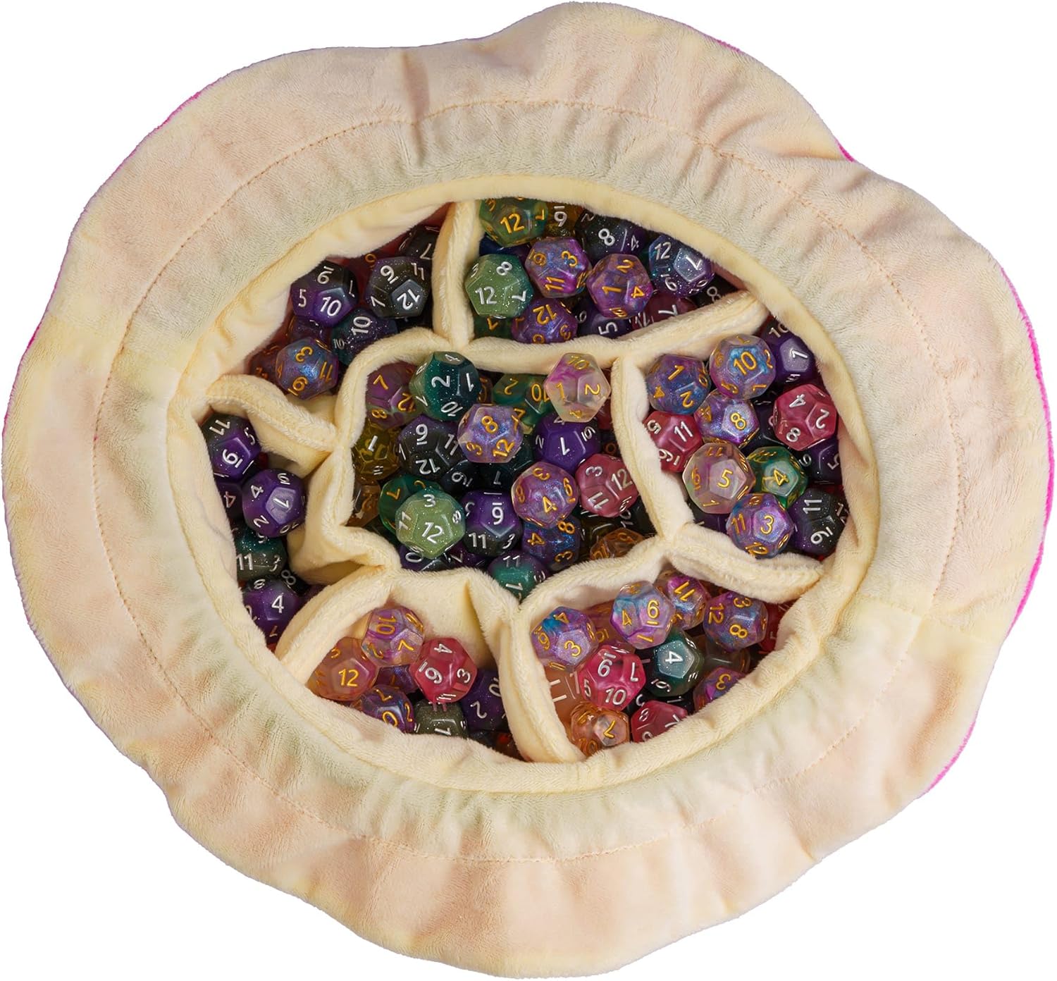 - 【Big Capacity】: The dnd dice storage bag has a round base about 7.5 inches in diameter and 4.7 inches tall, and the round opening about 11.8 inches in diameter. Are you still worried about how to storage your large number of dice? This large dice bag can easily hold over 200 dices, so please have it with confidence.
