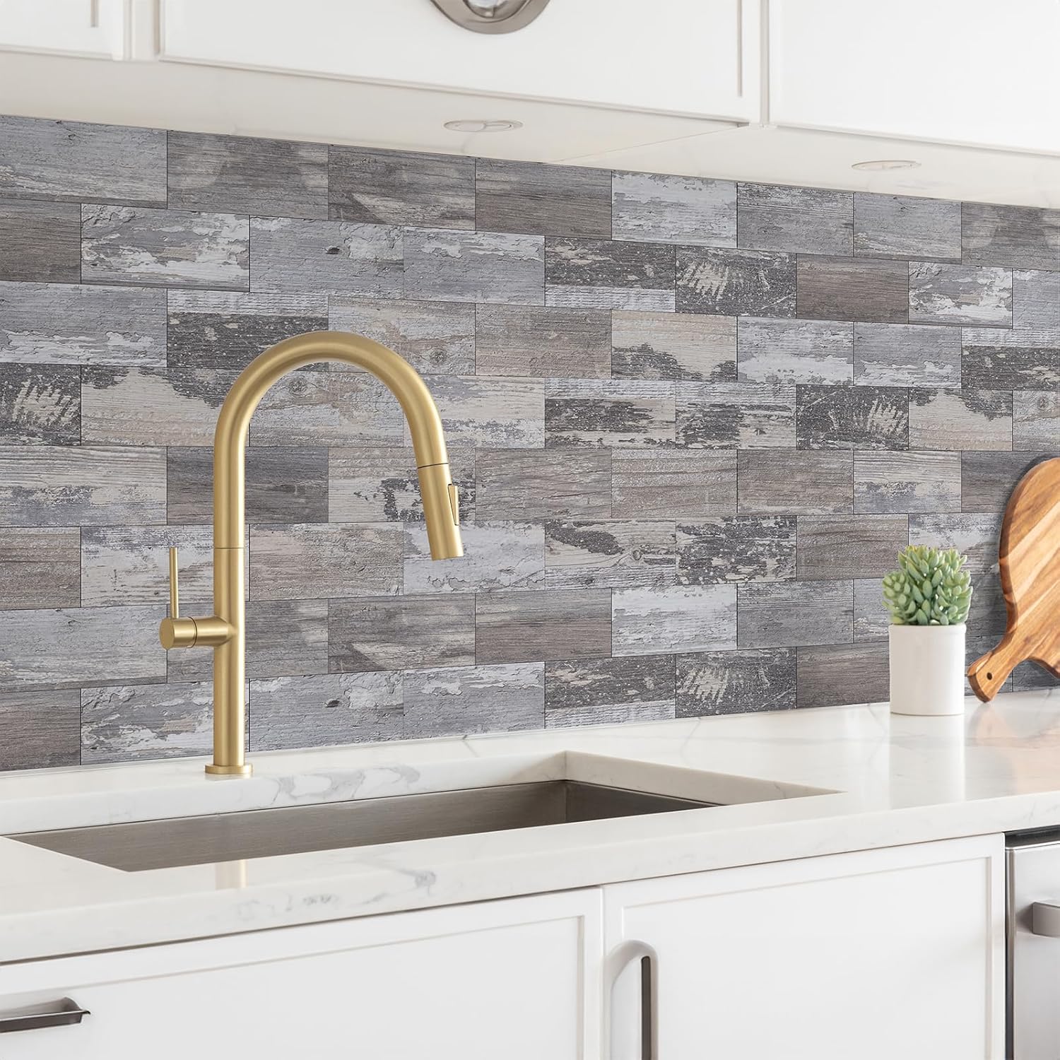 100 Pieces Peel and Stick Backsplash for Kitchen, 3" x 6" PVC Subway Tile Upgraded Distressed Wood Backsplash Stick on Tile Elevate Kitchen, Bathroom, Fireplace,RV