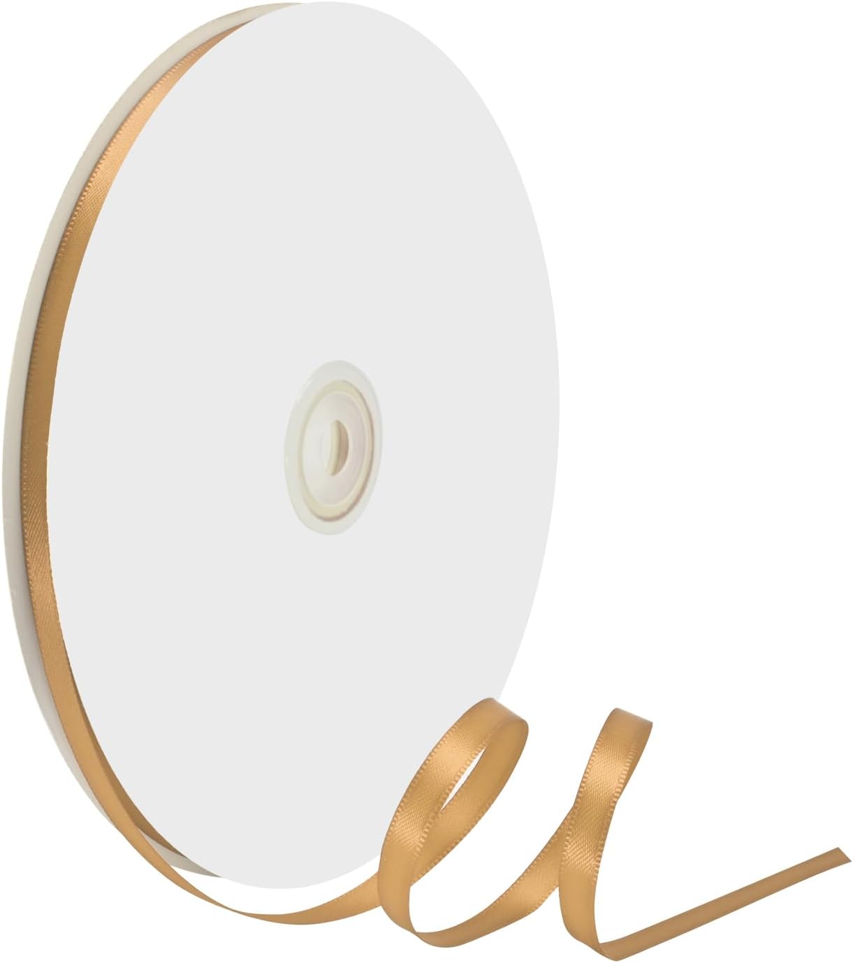 1/4" X 100 Yards Old Gold Satin Thin Ribbon Solid Color Double Faced Ribbons Perfect for Crafts Wedding Decor Bow Making Arts Sewing and More