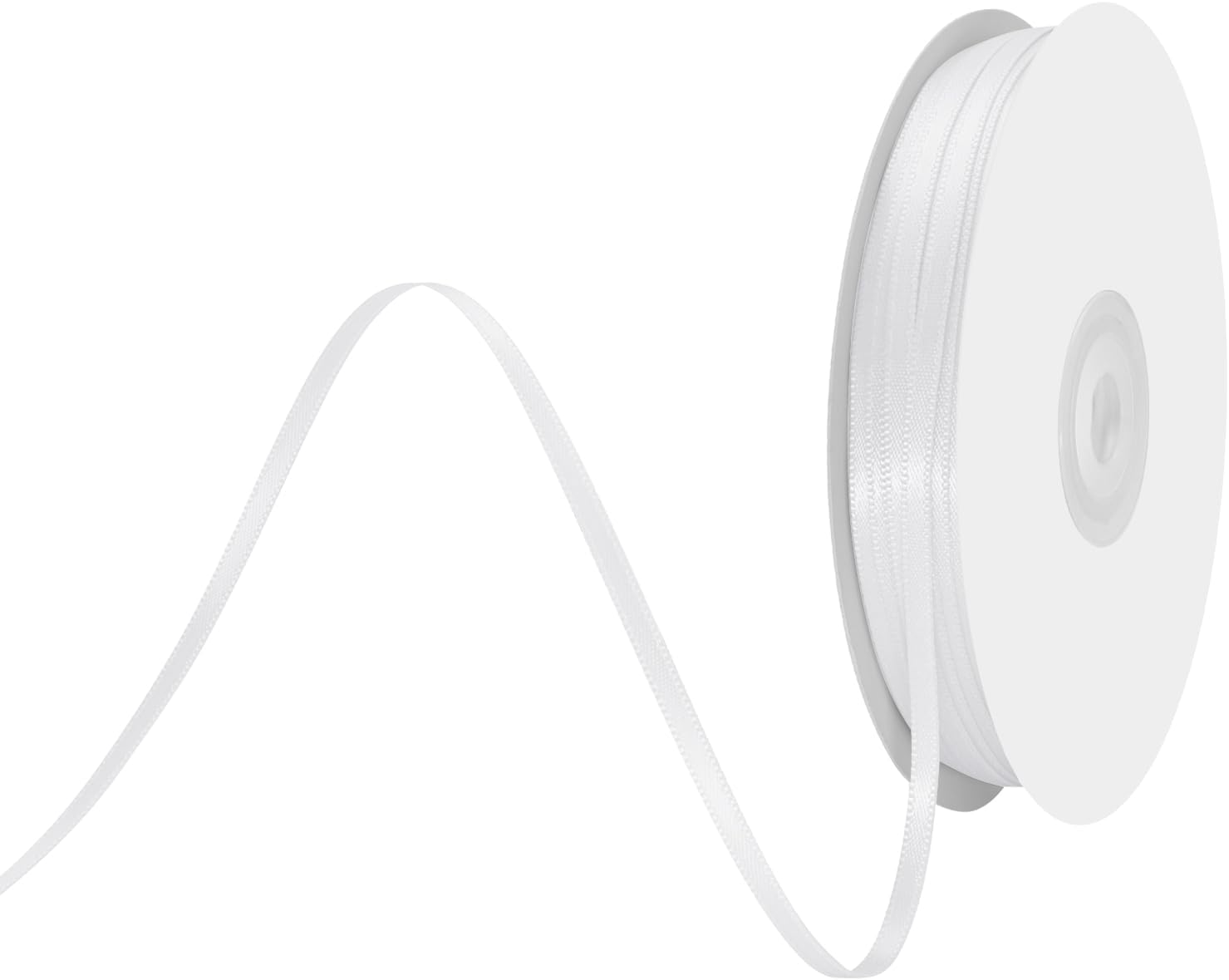 1/8" X 100 Yards White Satin Thin Ribbon Solid Color Double Faced Ribbons Perfect for Crafts Wedding Decor Bow Making Arts Sewing and More